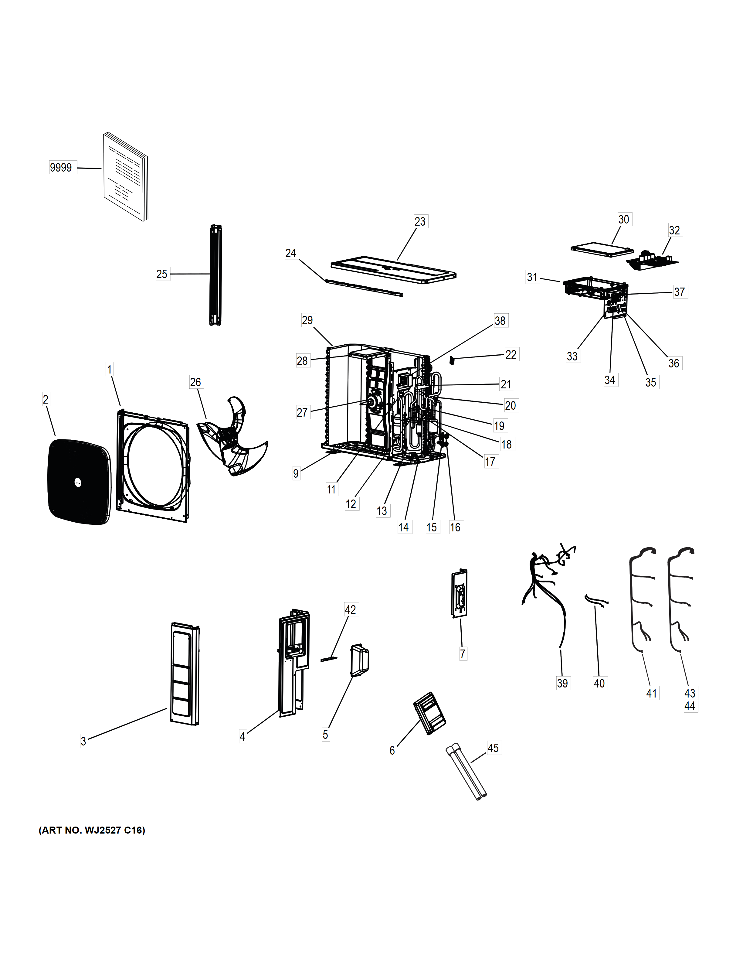 Model GE 1U24T3PS1HE Room Air Conditioner Built In – Common Parts & Diagrams