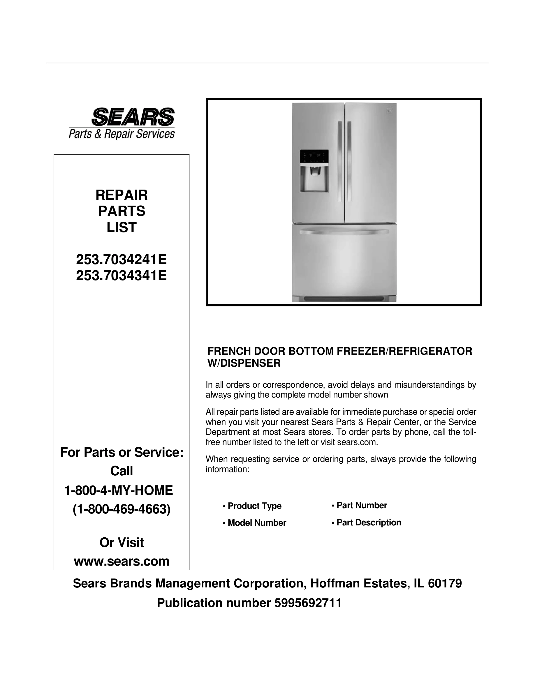 Model Kenmore 253.7034241E REFRIGERATOR – Common Parts & Diagrams