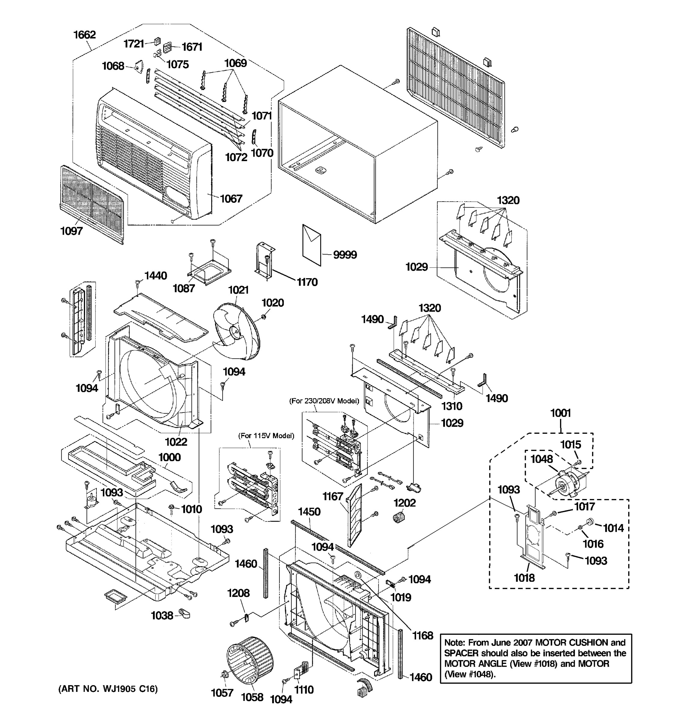 Model GE AJCH10DCCW2 Room Air Conditioner Built In – Common Parts & Diagrams
