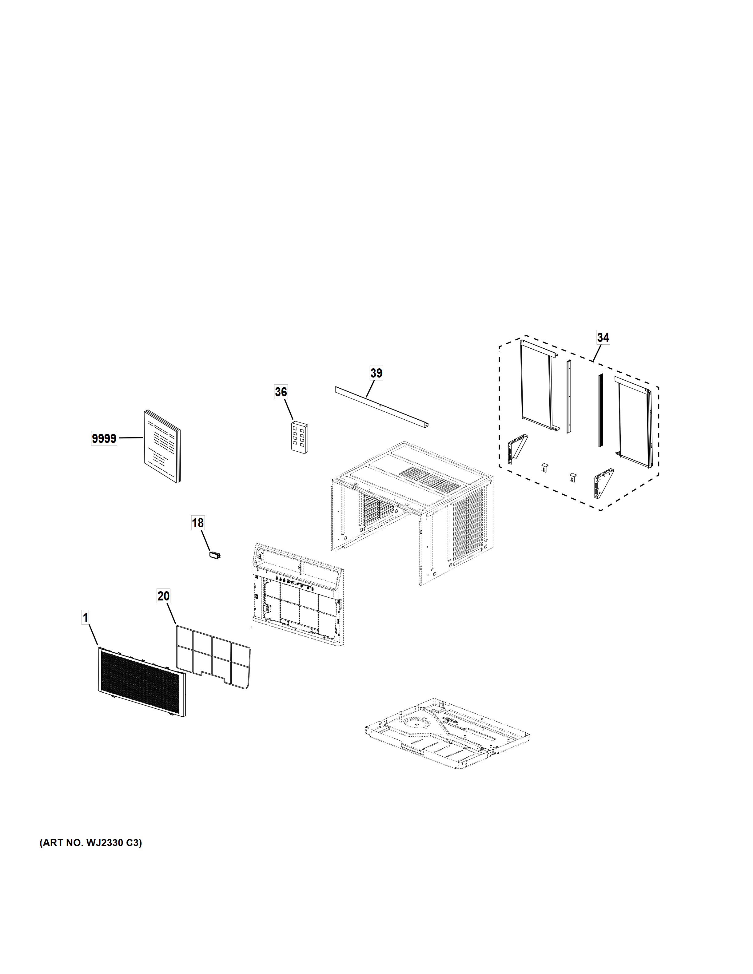 Model GE AKLK12AAG1 Room Air Conditioner Built In – Common Parts & Diagrams