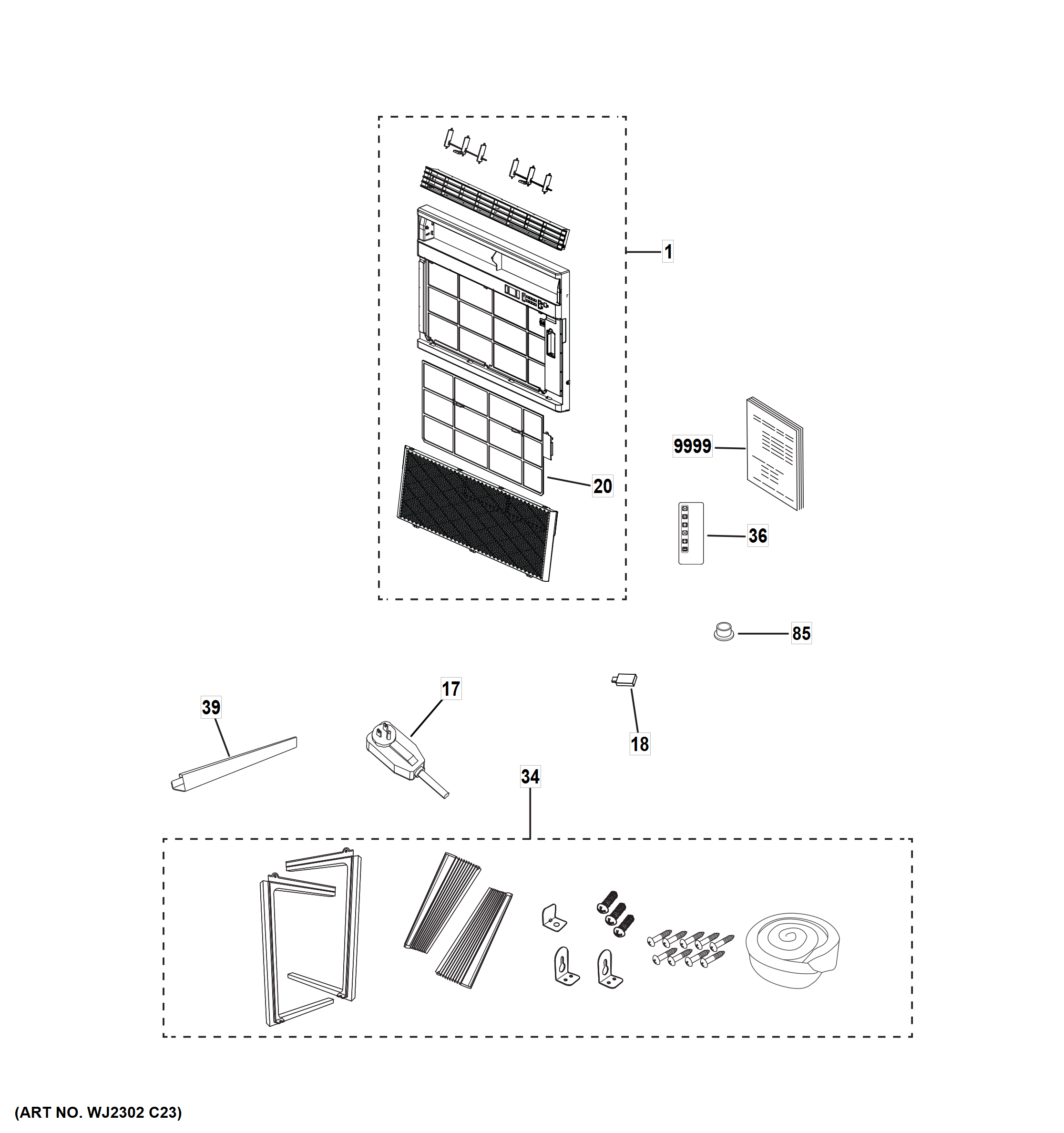 Model GE AWCS08WWB1 Room Air Conditioner Built In – Common Parts & Diagrams