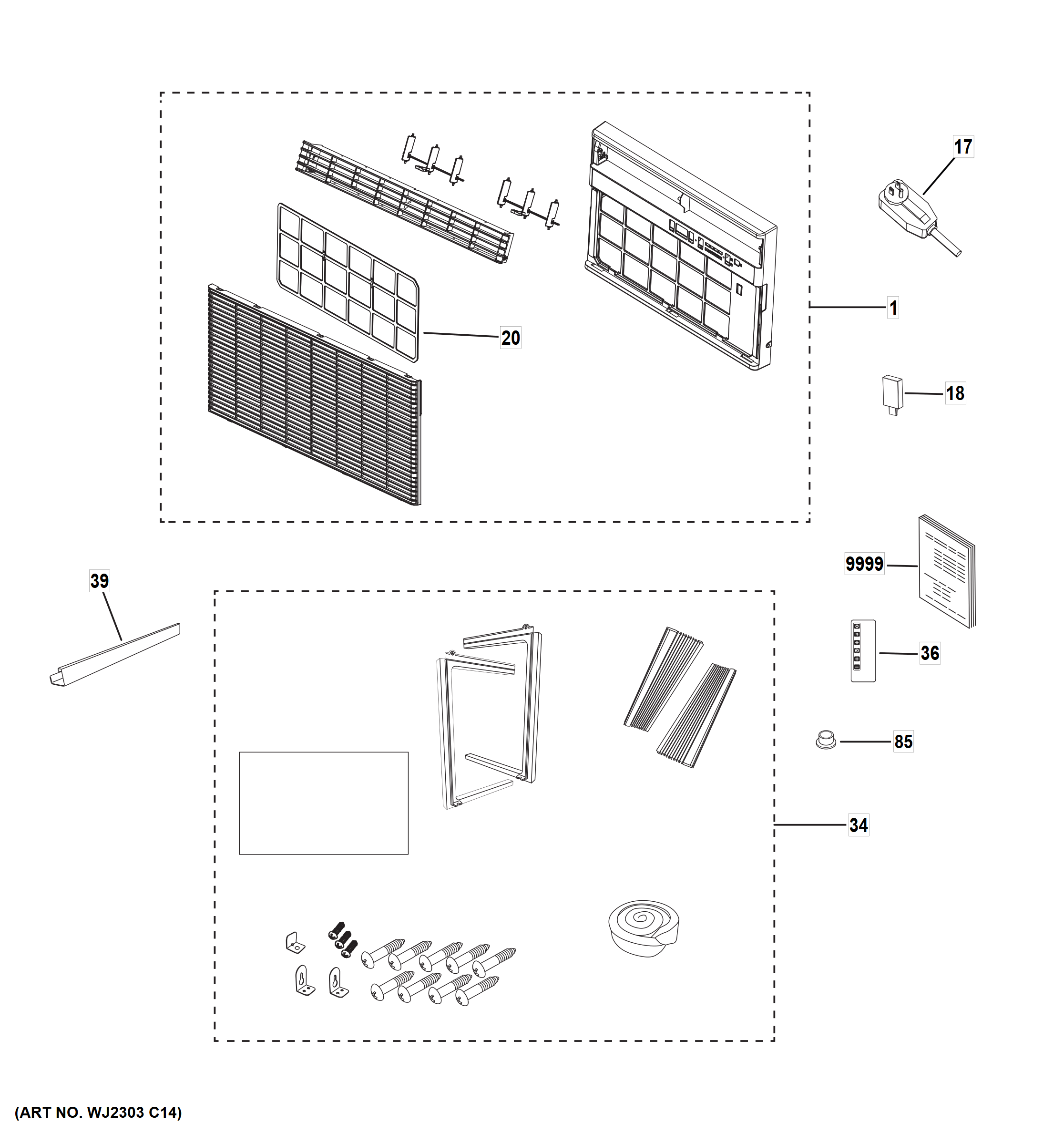 Model GE AWCS14WWA1 Room Air Conditioner Built In – Common Parts & Diagrams