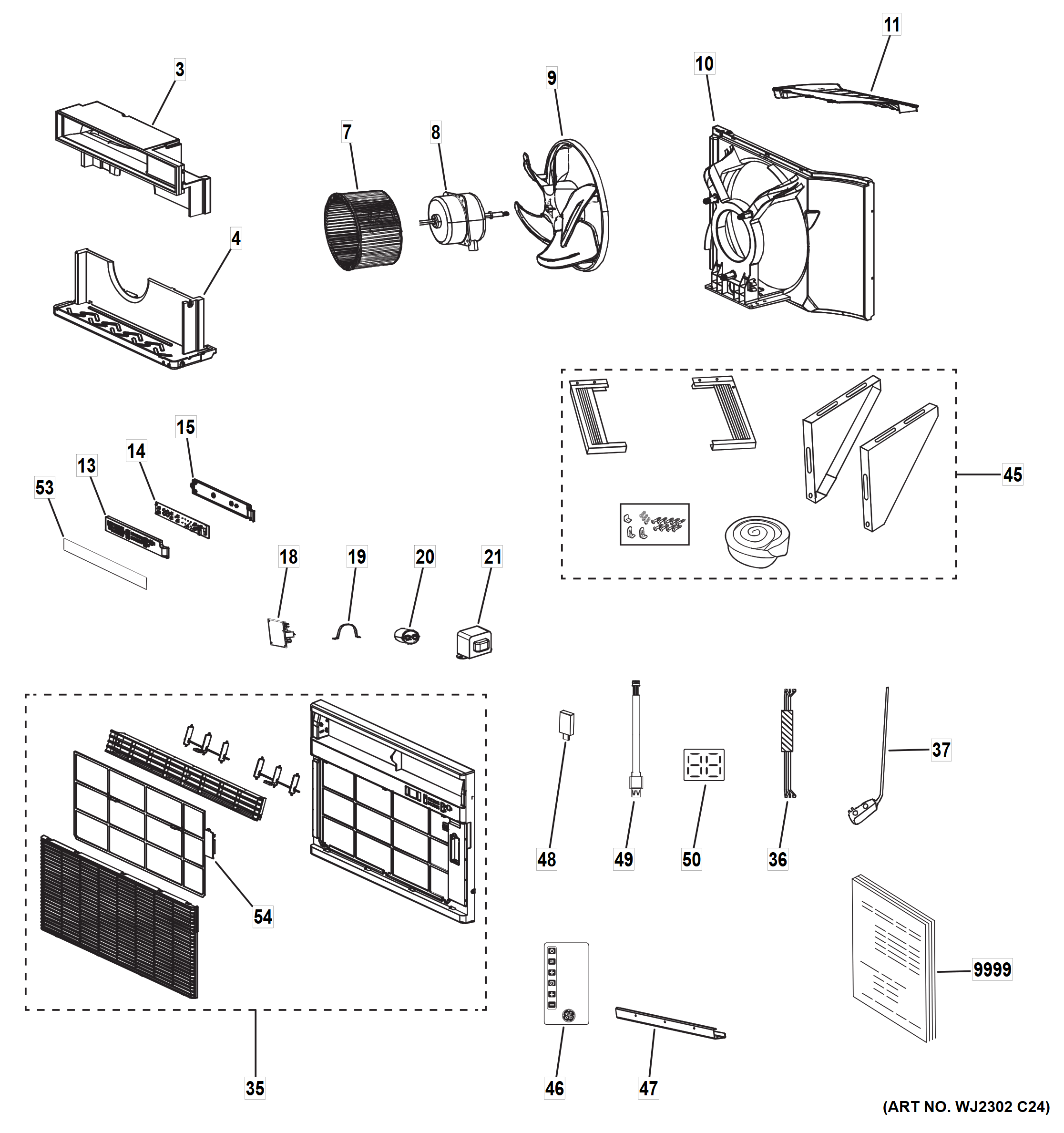 Common parts from model GE AWCS18WWF1 Room Air Conditioner Built In
