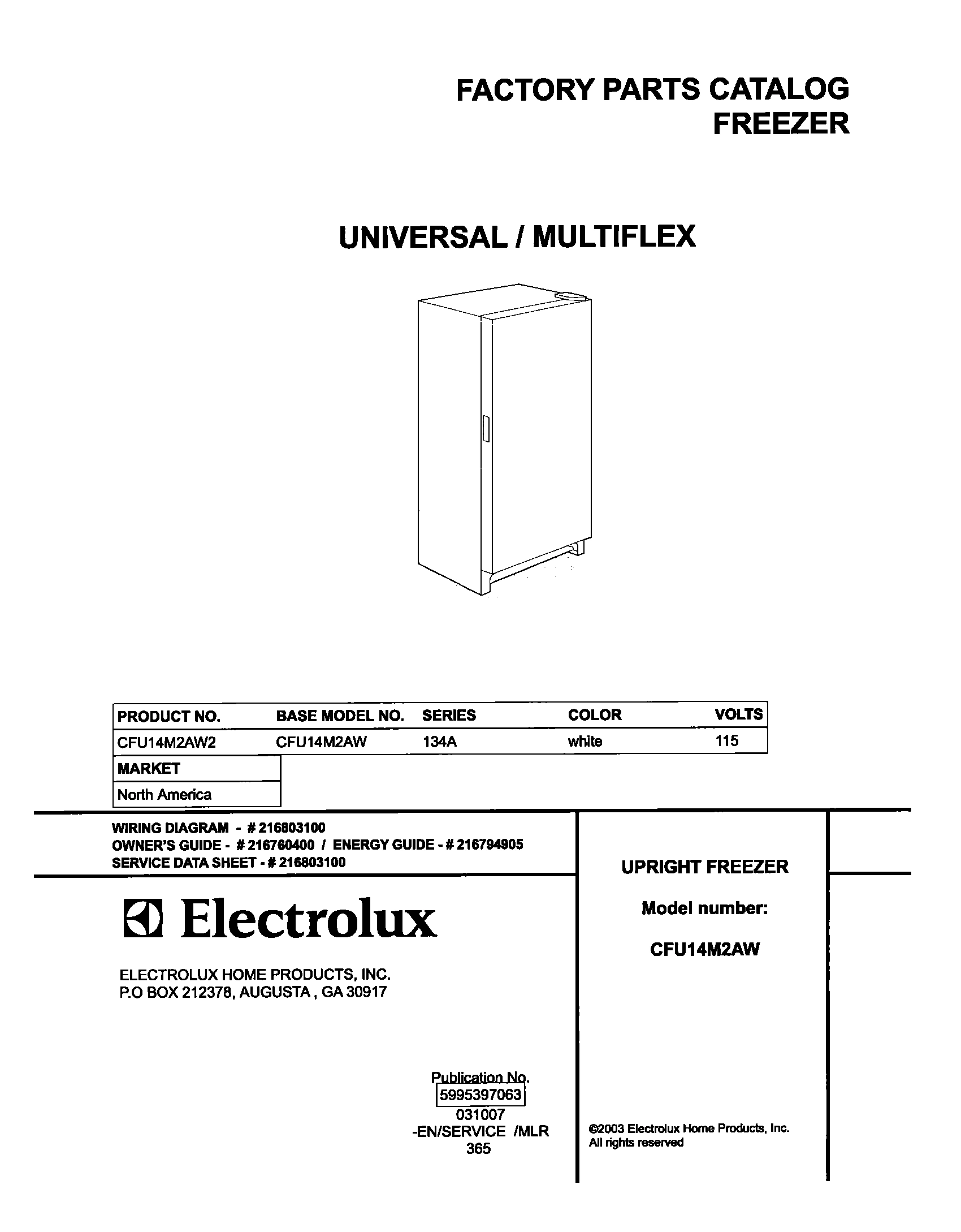 Model Electrolux CFU14M2AW2 FREEZER – Common Parts & Diagrams