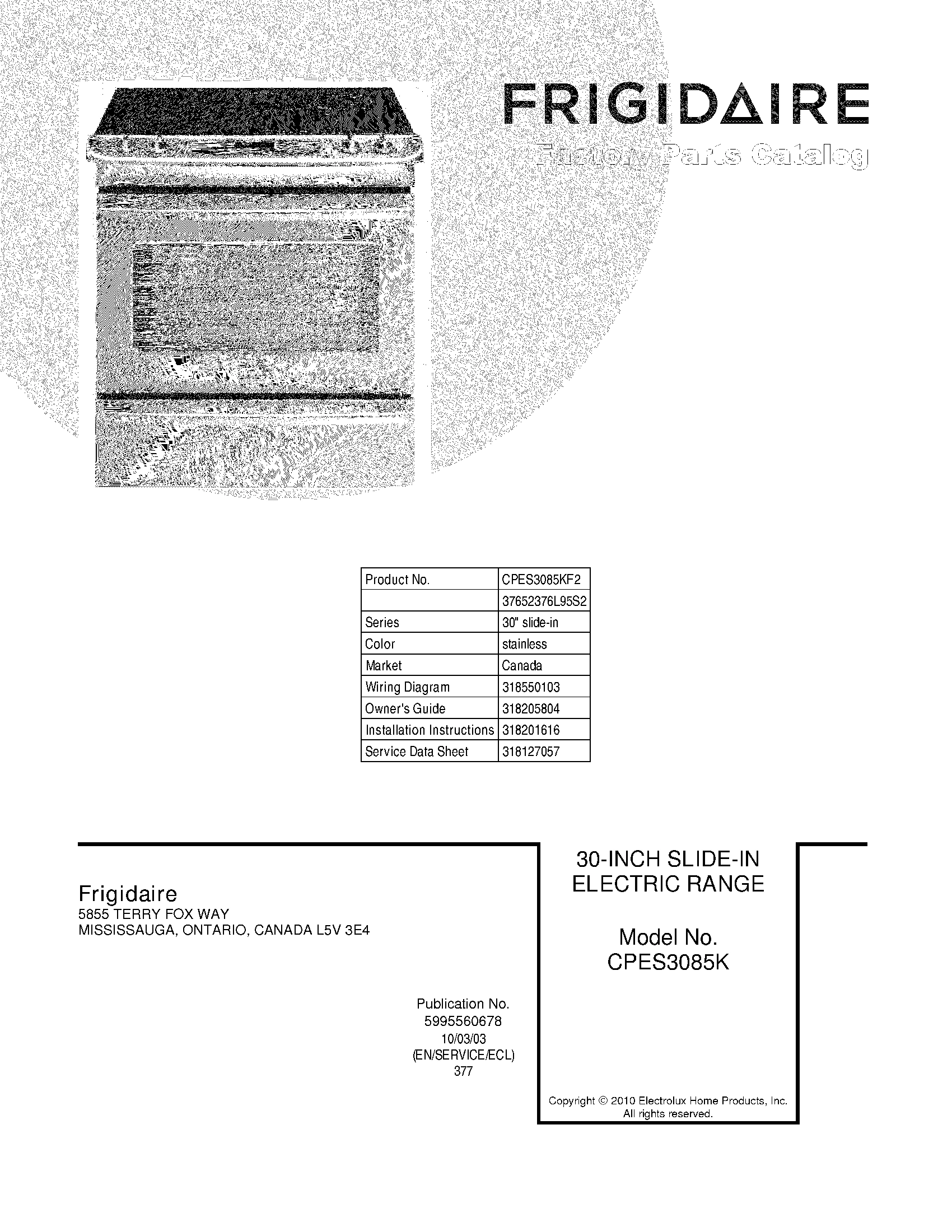 Model Electrolux CPES3085KF2 RANGE – Common Parts & Diagrams