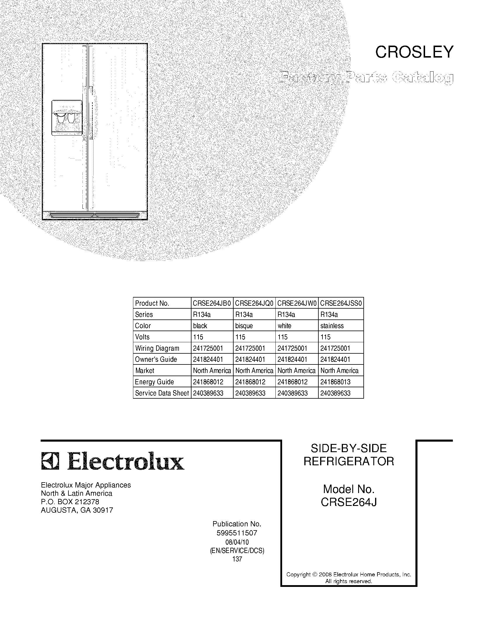 Model Electrolux CRSE264JW0 REFRIGERATOR – Common Parts & Diagrams