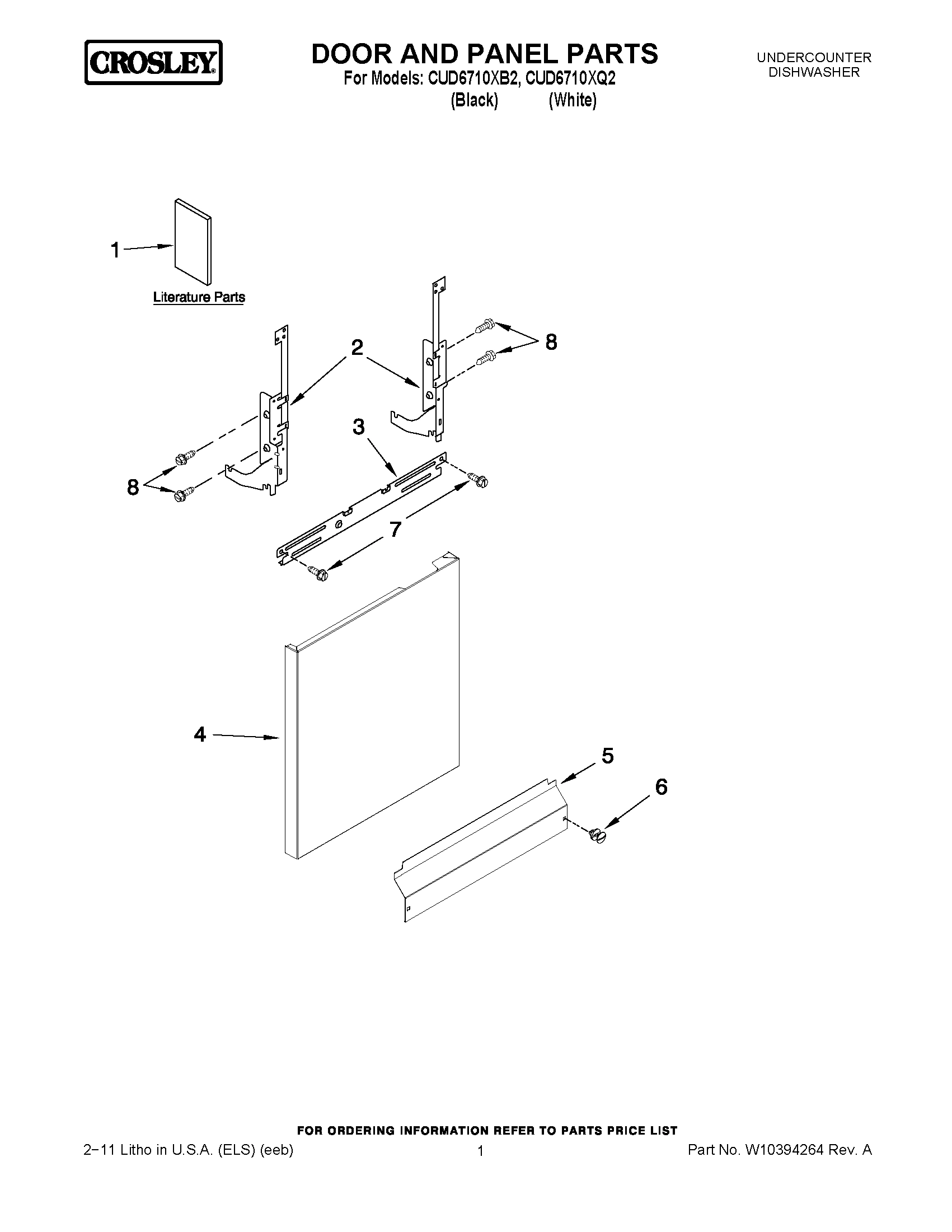 Model Whirlpool CUD6710XQ2 UNDERCOUNTER DISHWASHER – Common Parts & Diagrams