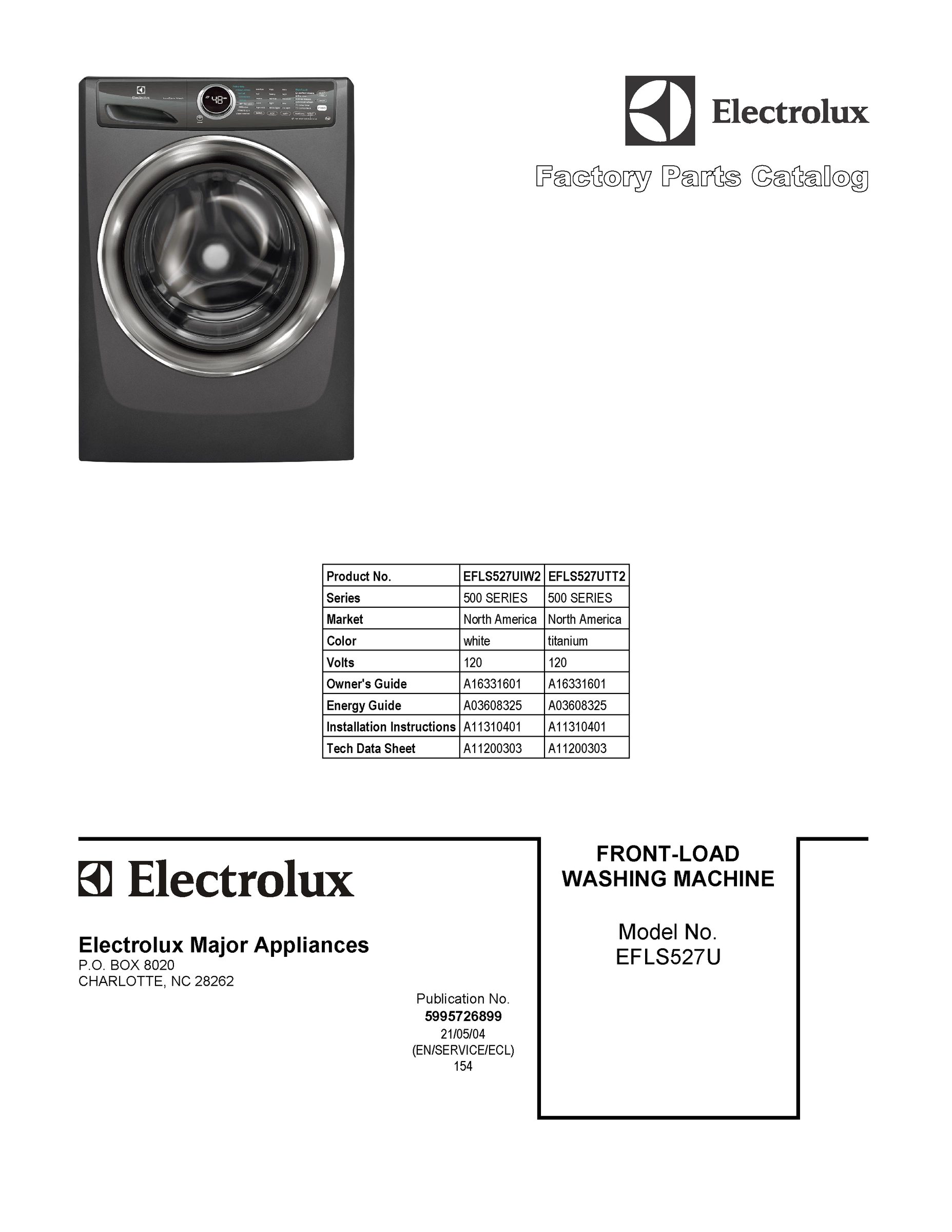 Model Electrolux EFLS527UIW2 LAUNDRY, RESIDENTIAL, WASHER, FRONT-LOAD – Common Parts & Diagrams