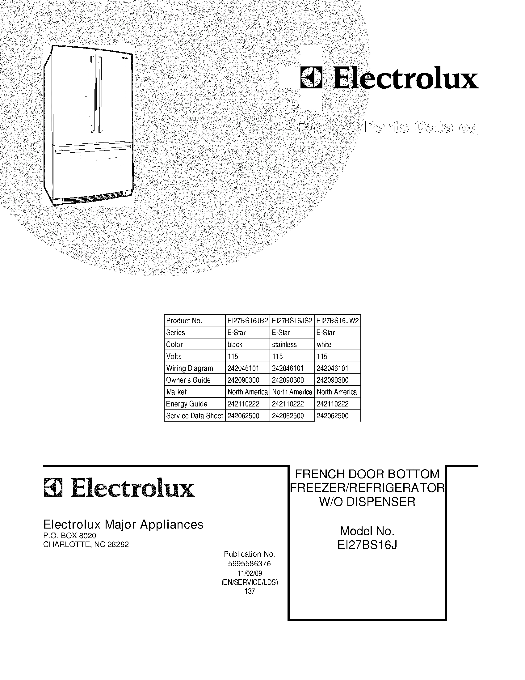 Model Electrolux EI27BS16JB2 REFRIGERATOR – Common Parts & Diagrams