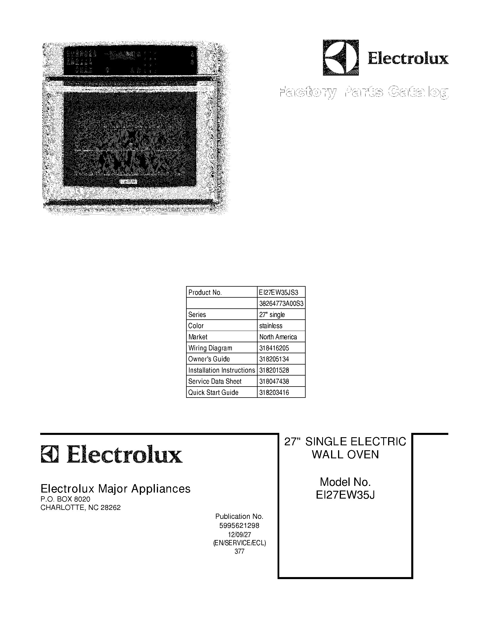 Model Electrolux EI27EW35JS3 WALL OVEN – Common Parts & Diagrams