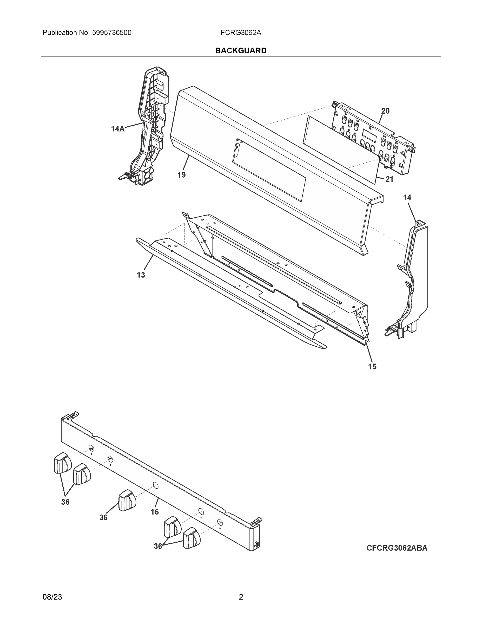 Model Electrolux FCRG3062ADA RANGE/OVEN, GAS, FREESTANDING, 30 INCH – Common Parts & Diagrams