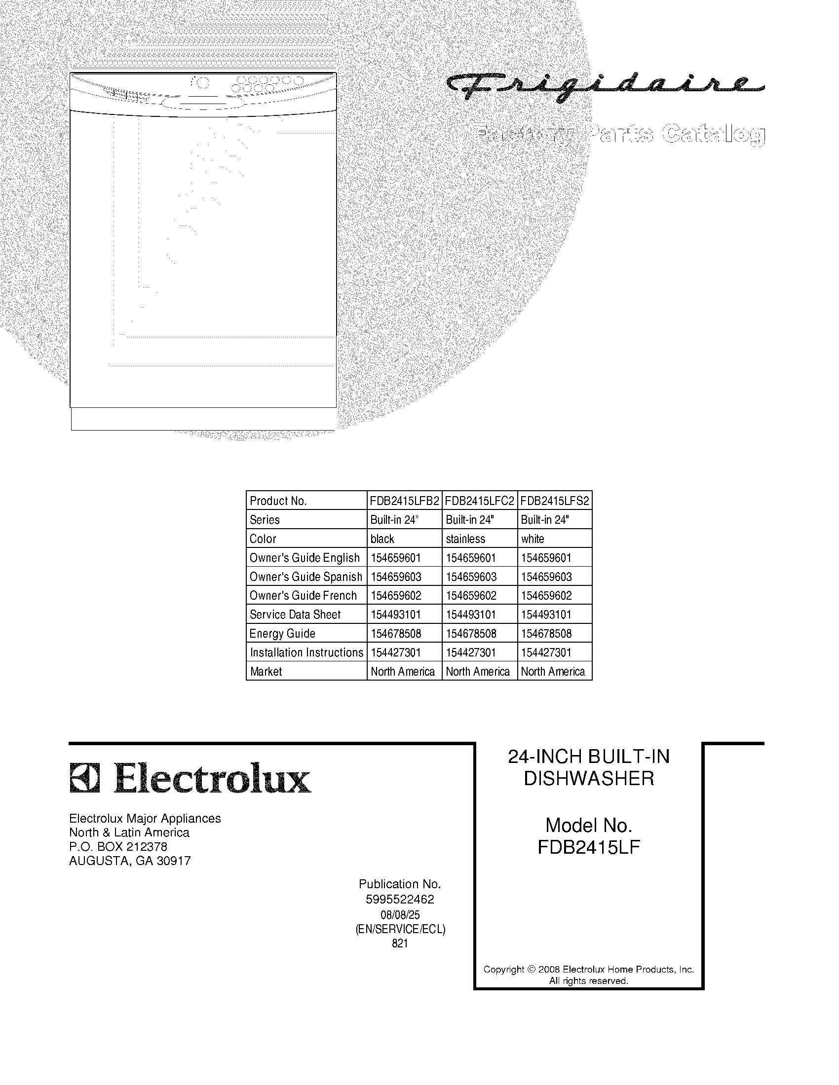 Model Electrolux FDB2415LFB2 DISHWASHER – Common Parts & Diagrams