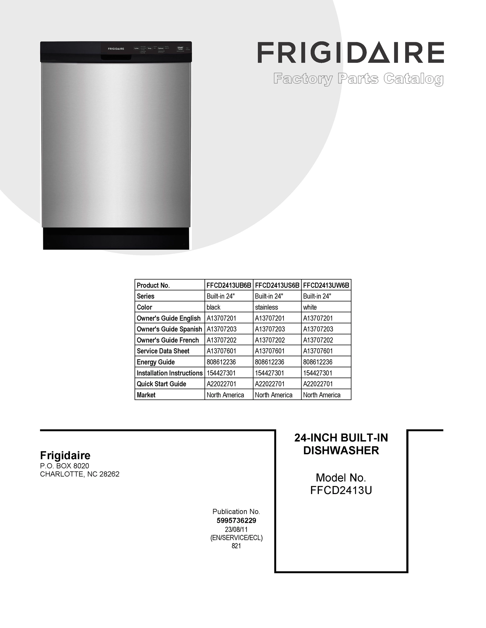 Model Electrolux FFCD2413UB6B DISHWASHER, BUILT-IN, 24 INCH – Common Parts & Diagrams