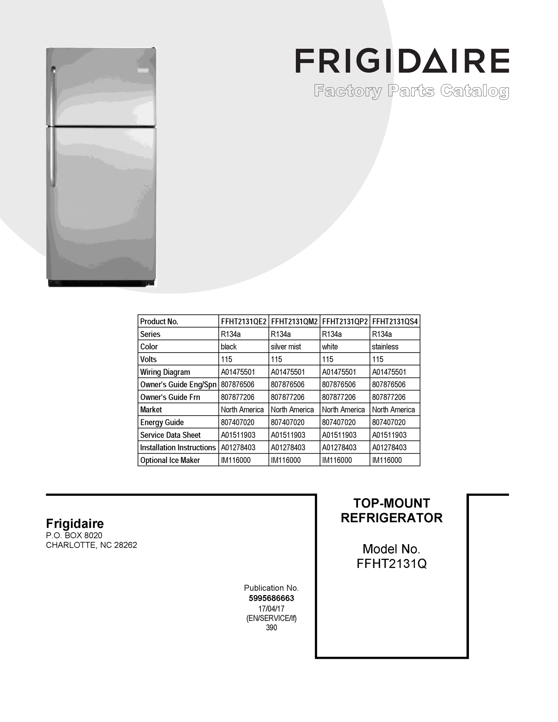 Model Electrolux FFHT2131QP2 REFRIGERATOR, TOP MOUNT – Common Parts & Diagrams