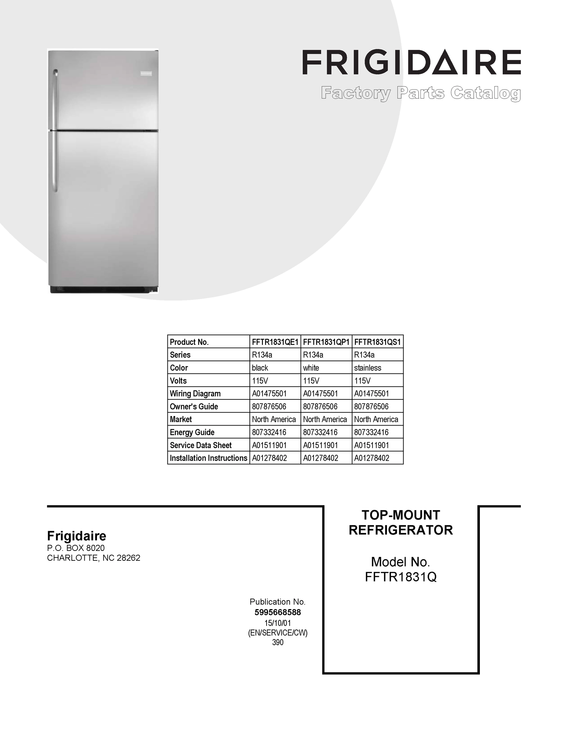 Model Electrolux FFTR1831QS1 REFRIGERATOR – Common Parts & Diagrams