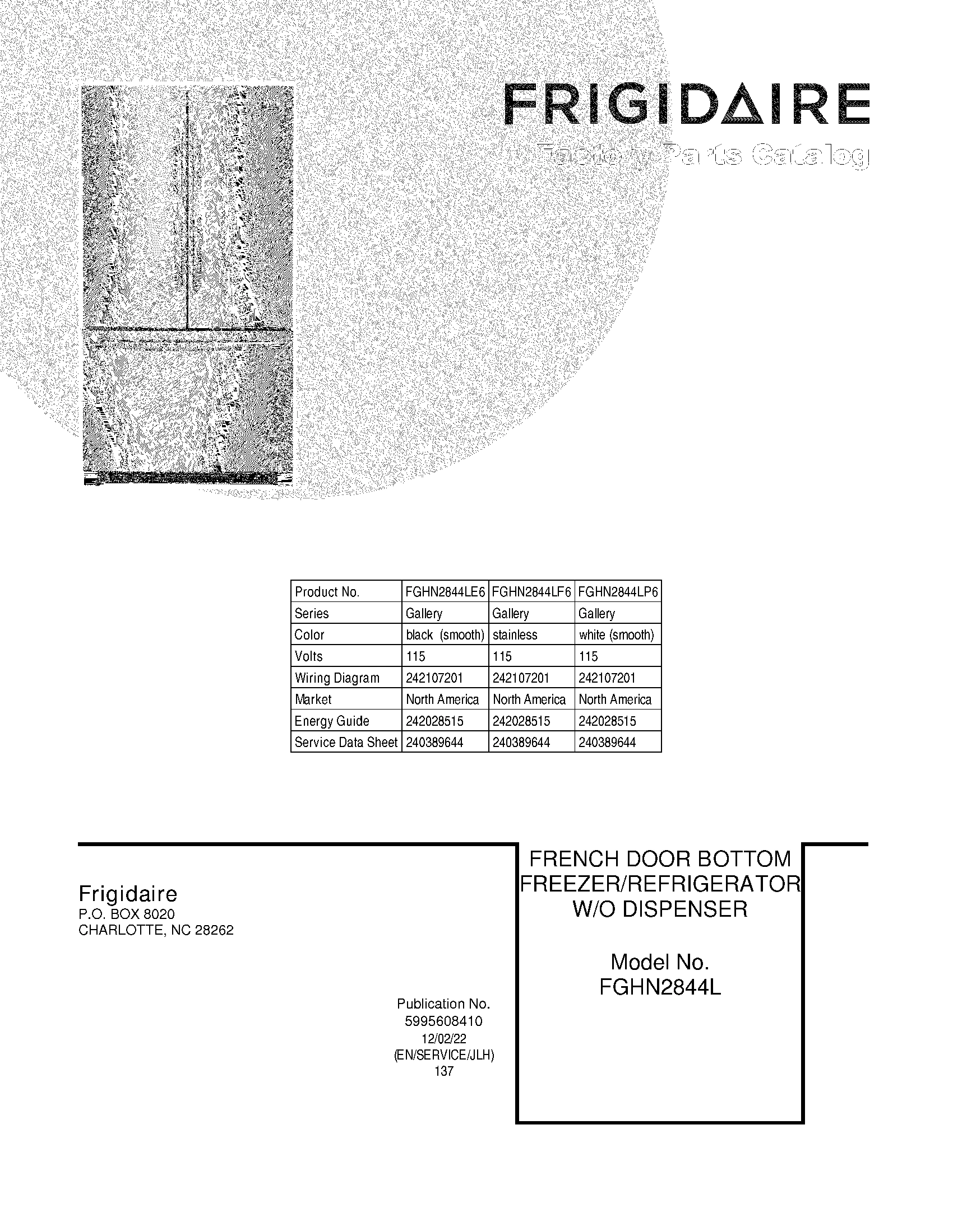 Model Electrolux FGHN2844LP6 REFRIGERATOR – Common Parts & Diagrams