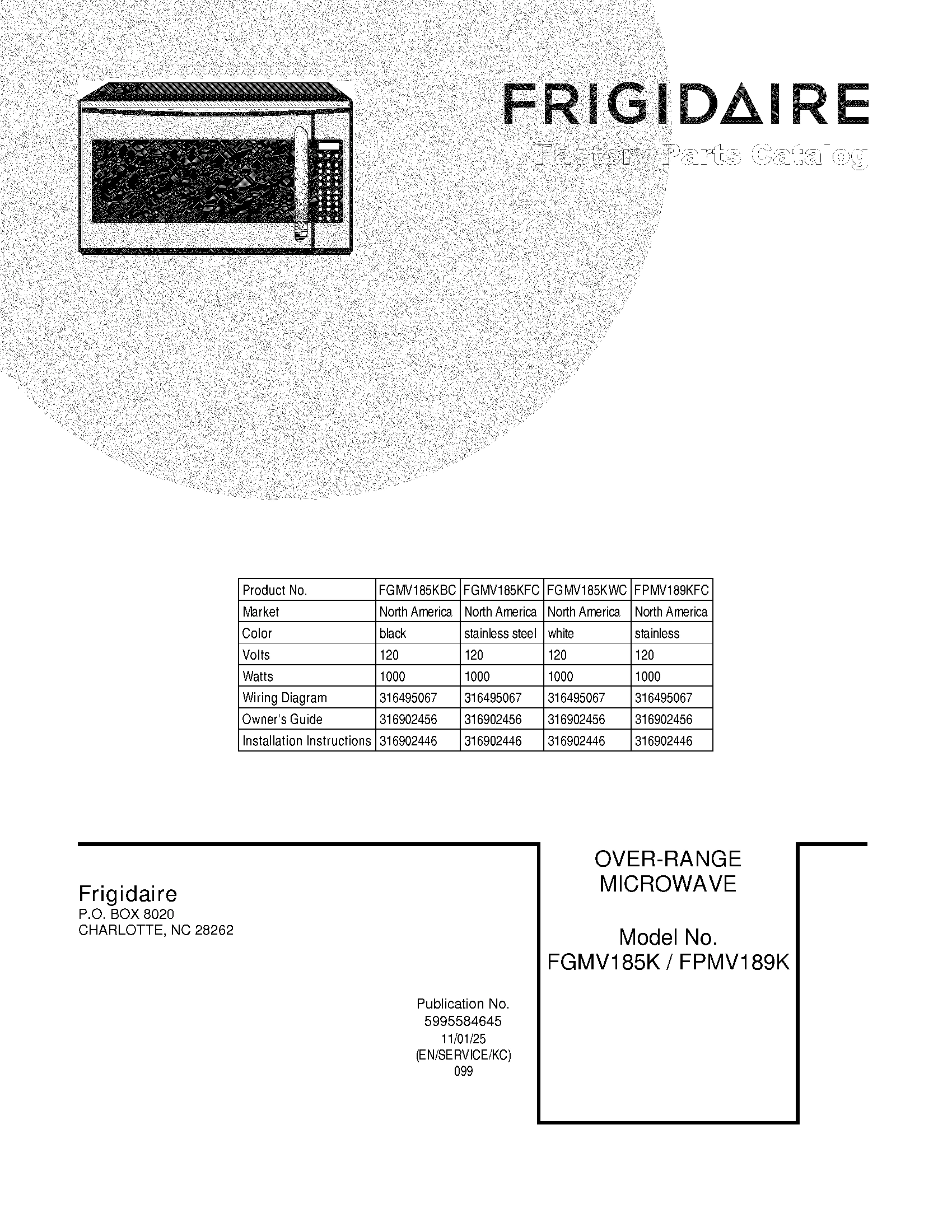 Model Electrolux FGMV185KFC MICROWAVE – Common Parts & Diagrams