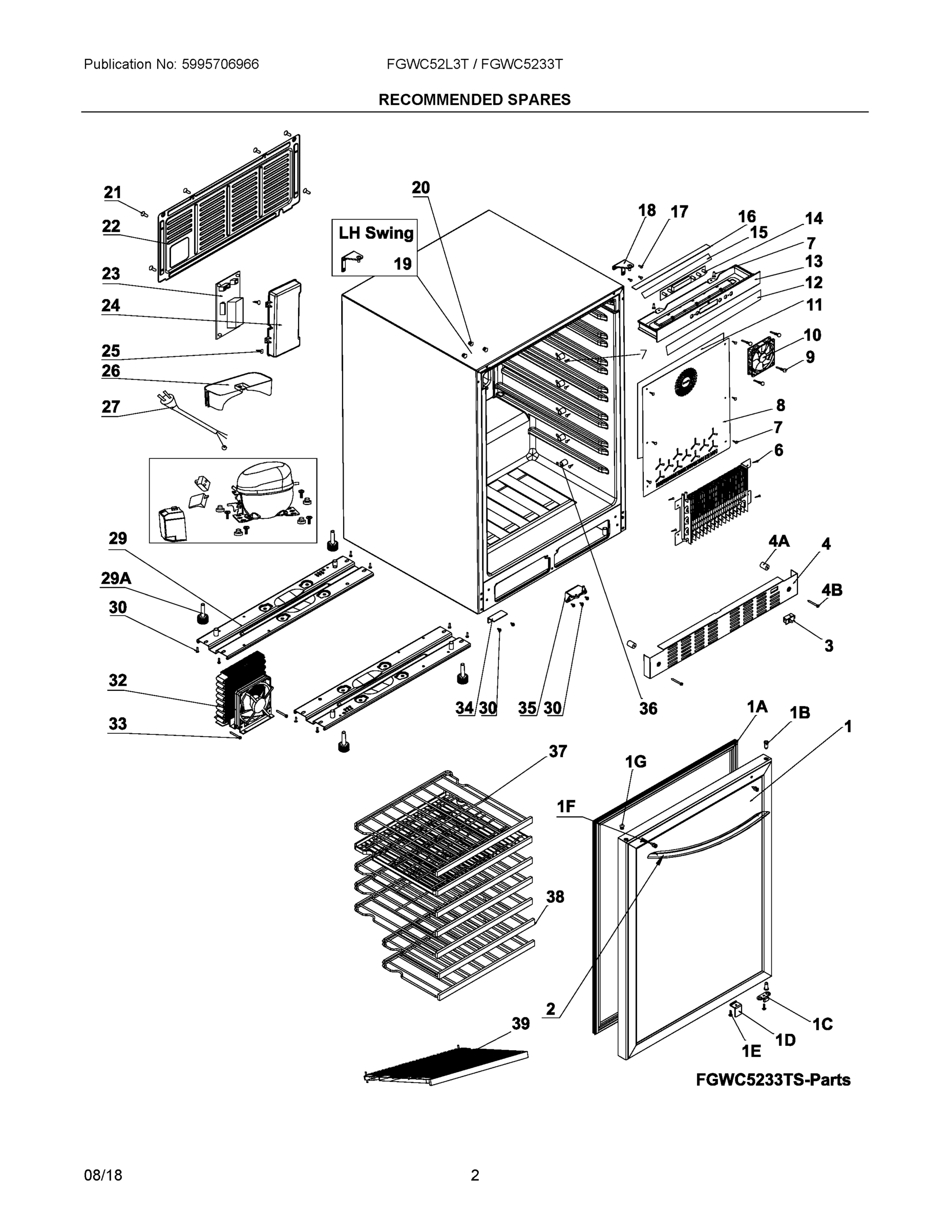 Model Electrolux FGWC52L3TS REFRIGERATOR, WINE COOLER – Common Parts & Diagrams