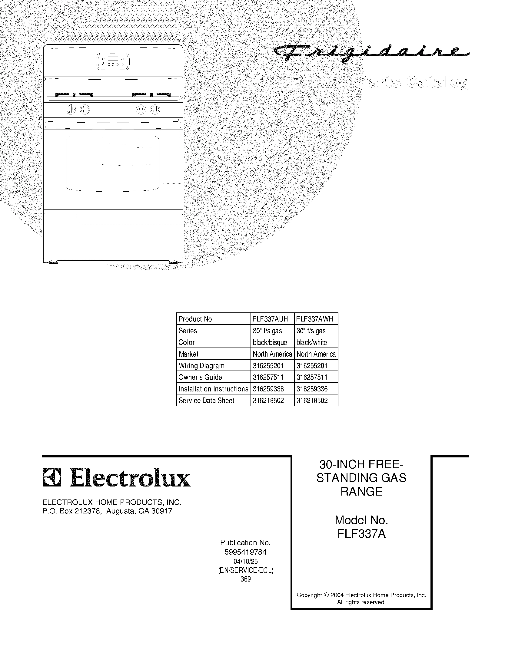 Model Electrolux FLF337AWH RANGE – Common Parts & Diagrams