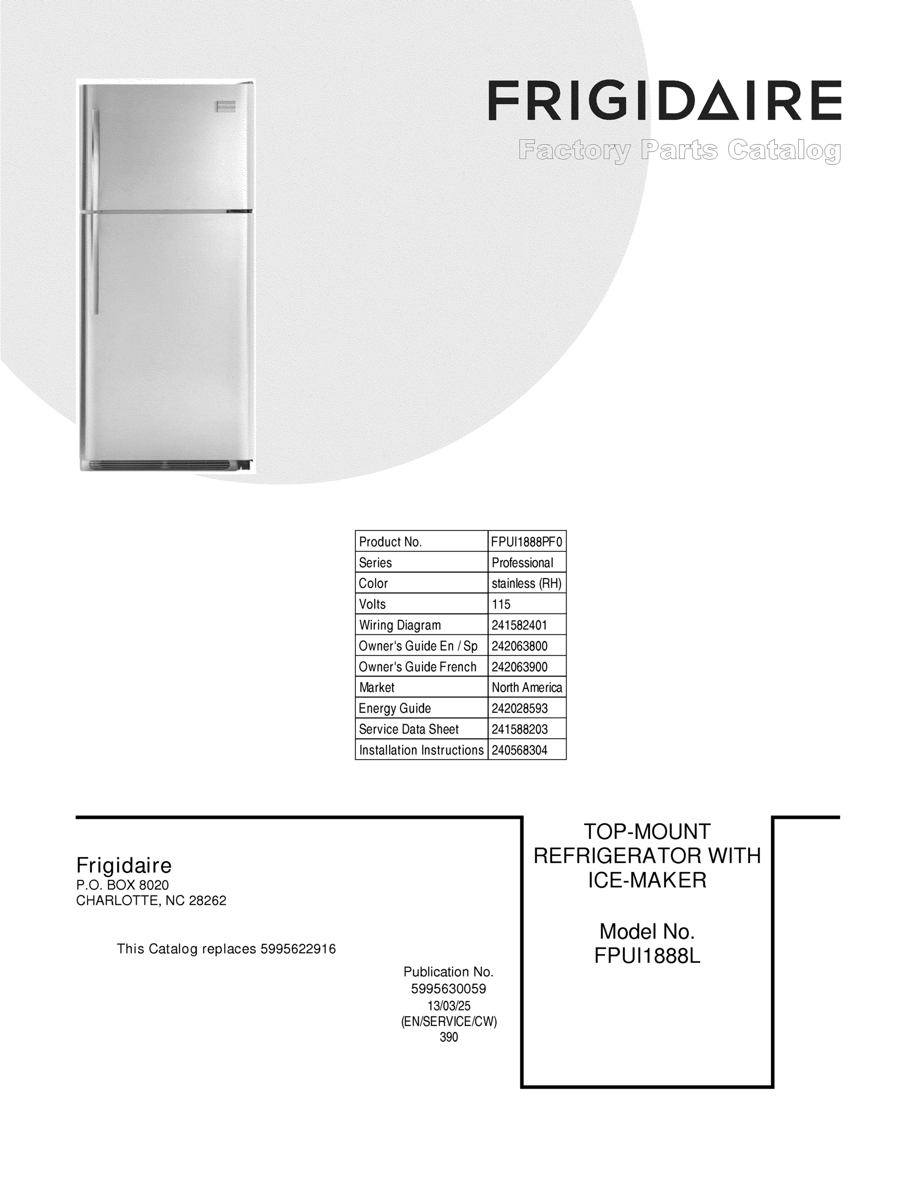 Model Electrolux FPUI1888PF0 REFRIGERATOR – Common Parts & Diagrams