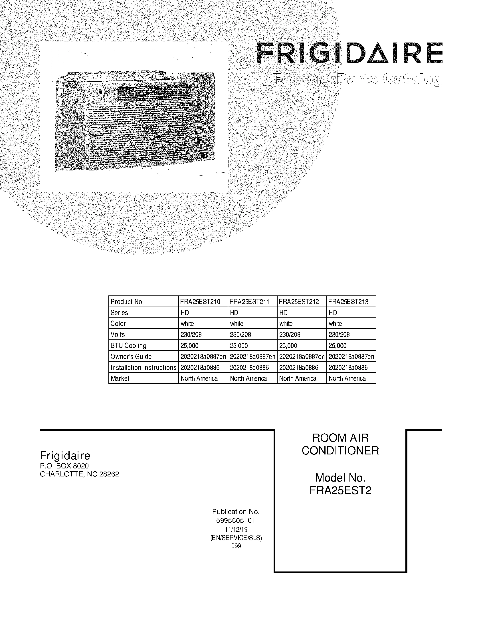 Model Electrolux FRA25EST211 ROOM AIR CONDITIONER – Common Parts & Diagrams