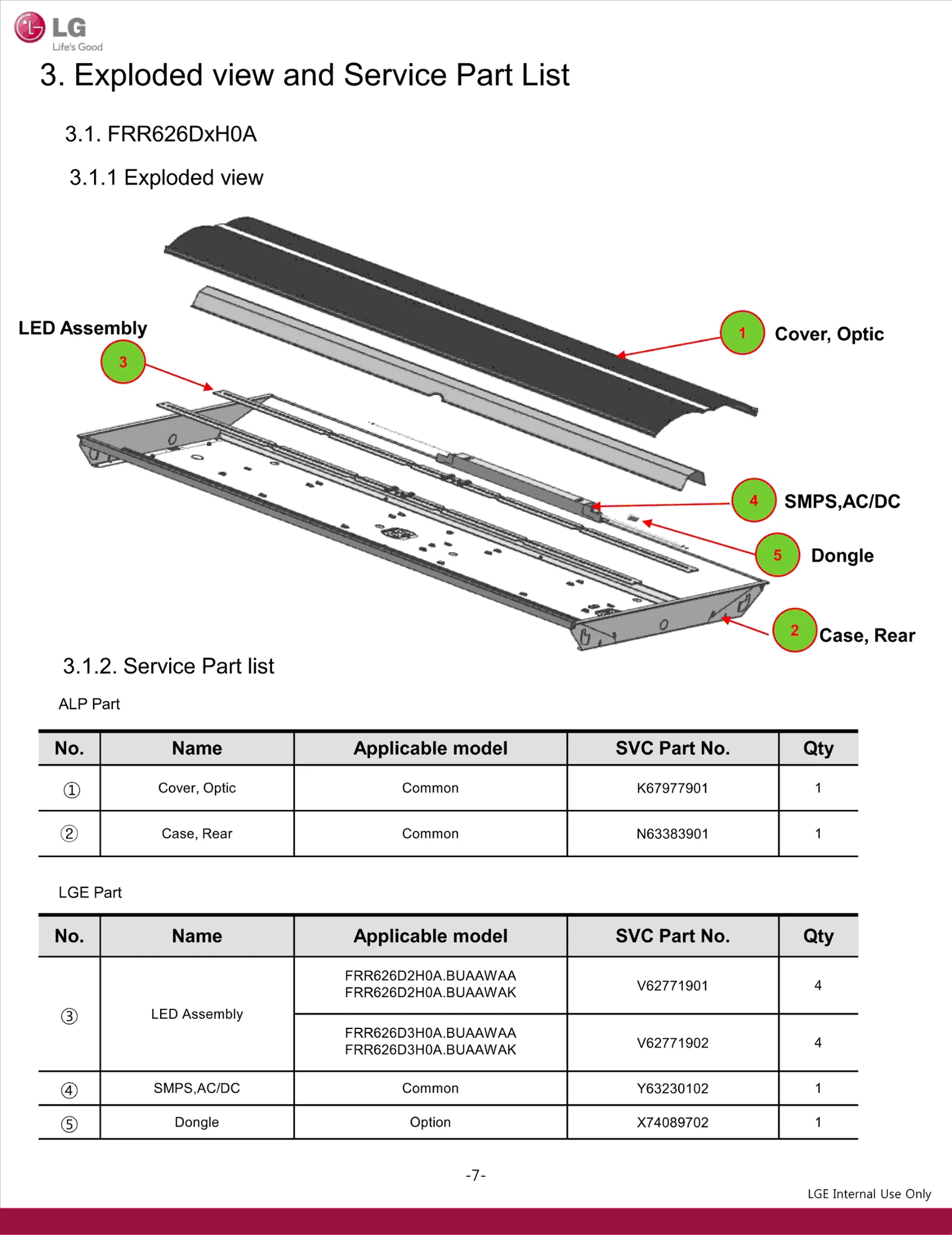 Model LG FRR626D3H0A 2x4 Troffer, 26W, 3500lm, 130lm/W, 4000K, 80Ra – Common Parts & Diagrams