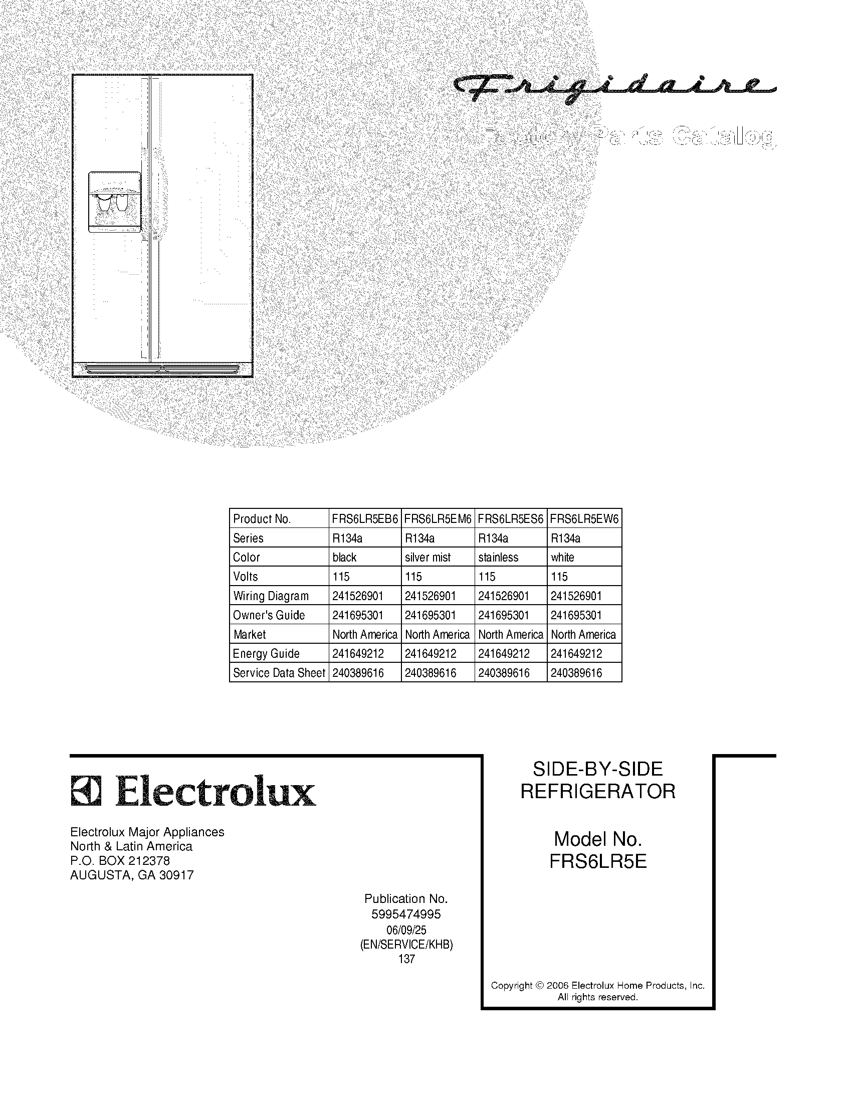 Model Electrolux FRS6LR5ES6 REFRIGERATOR – Common Parts & Diagrams