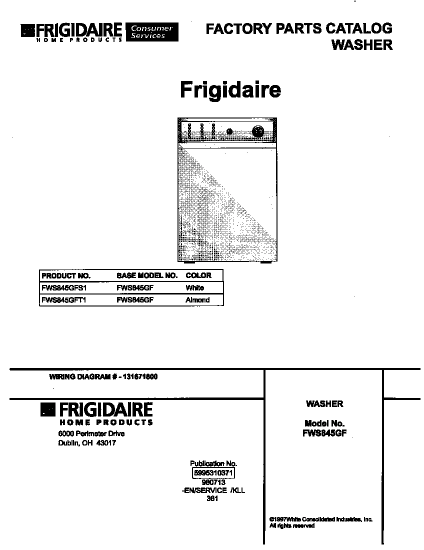 Model Electrolux FWS845GFT1 WASHER – Common Parts & Diagrams