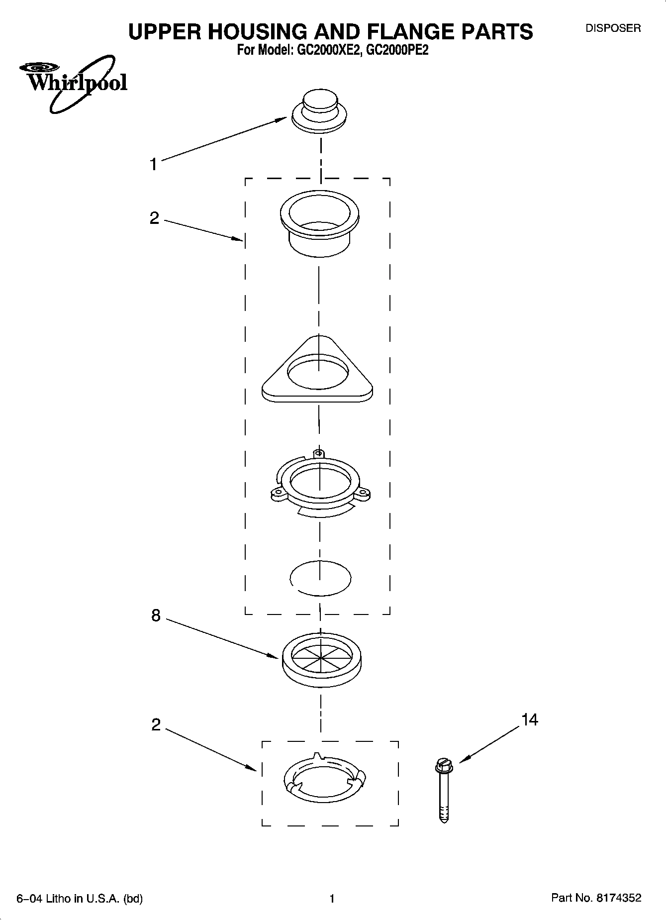 Model Whirlpool GC2000PE2 DISPOSER – Common Parts & Diagrams