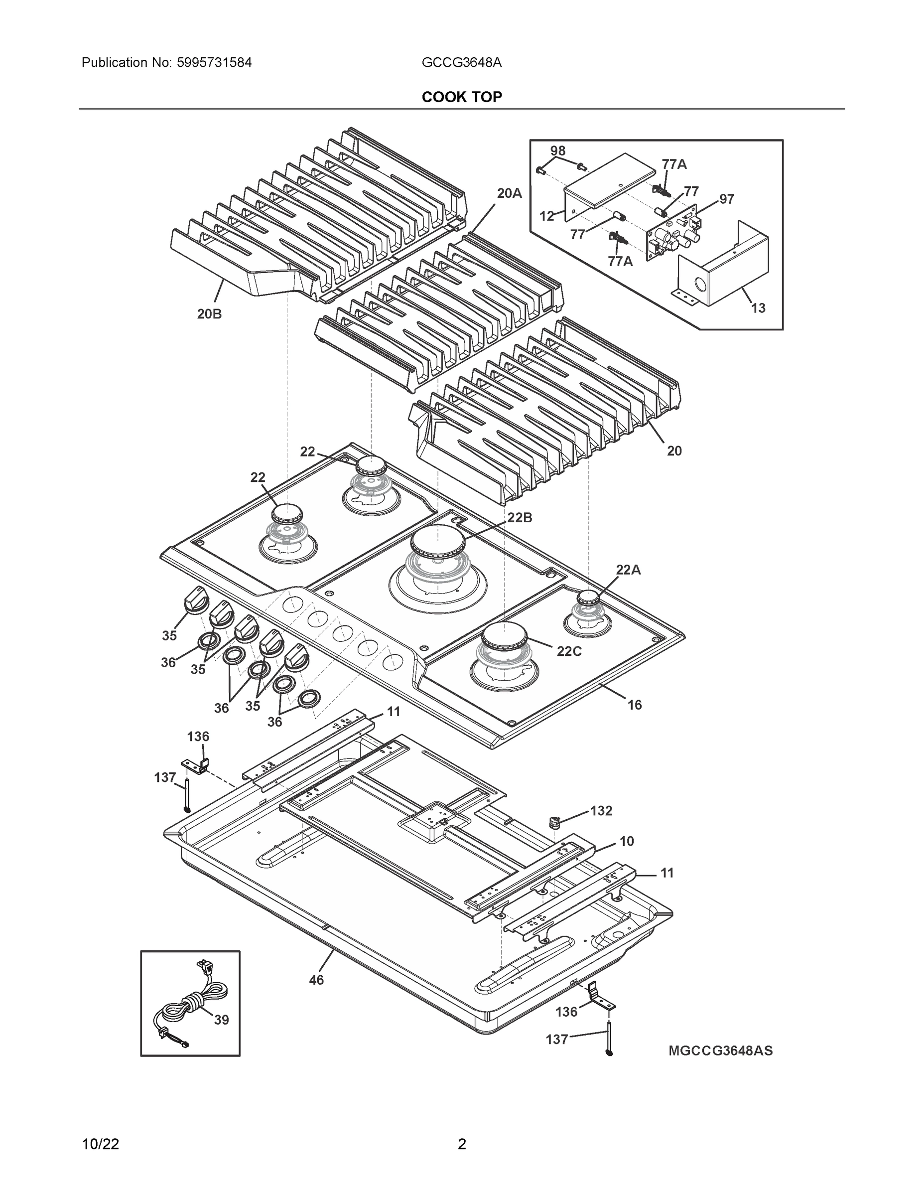 Model Electrolux GCCG3648AS COOKTOP, GAS, 36 INCH – Common Parts & Diagrams