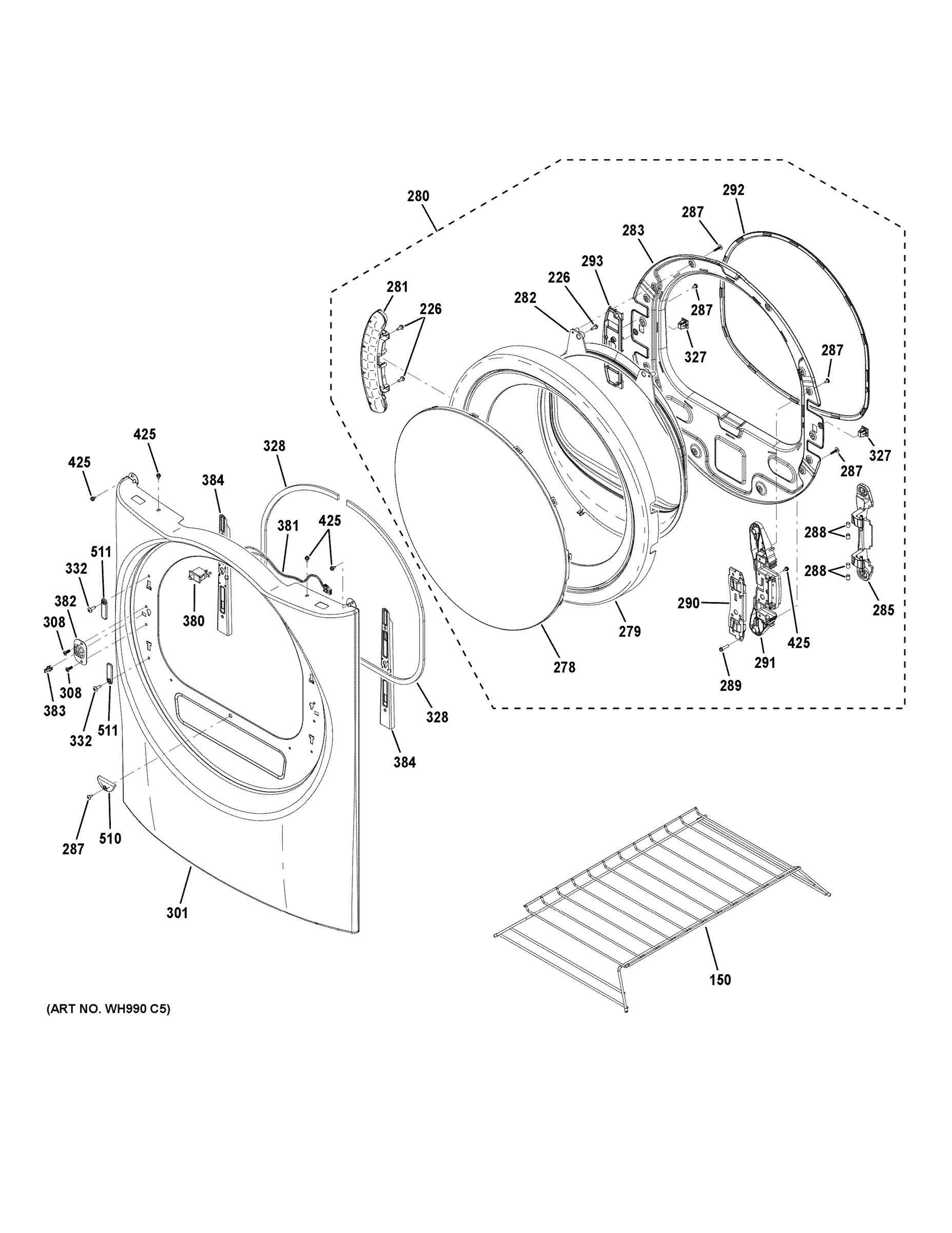 Model GE GFDR480GF0WW Dryer Gas – Common Parts & Diagrams