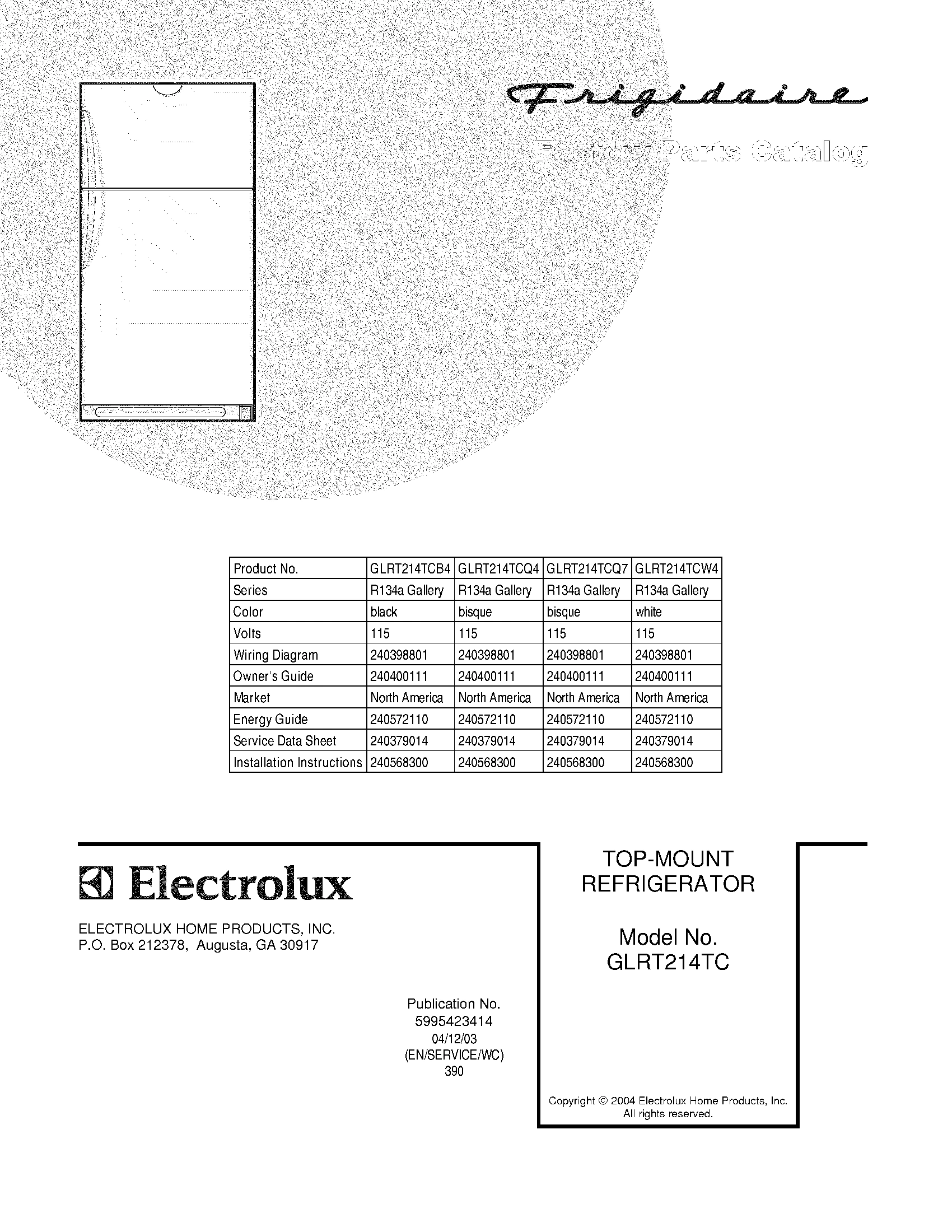 Model Electrolux GLRT214TCQ7 REFRIGERATOR – Common Parts & Diagrams
