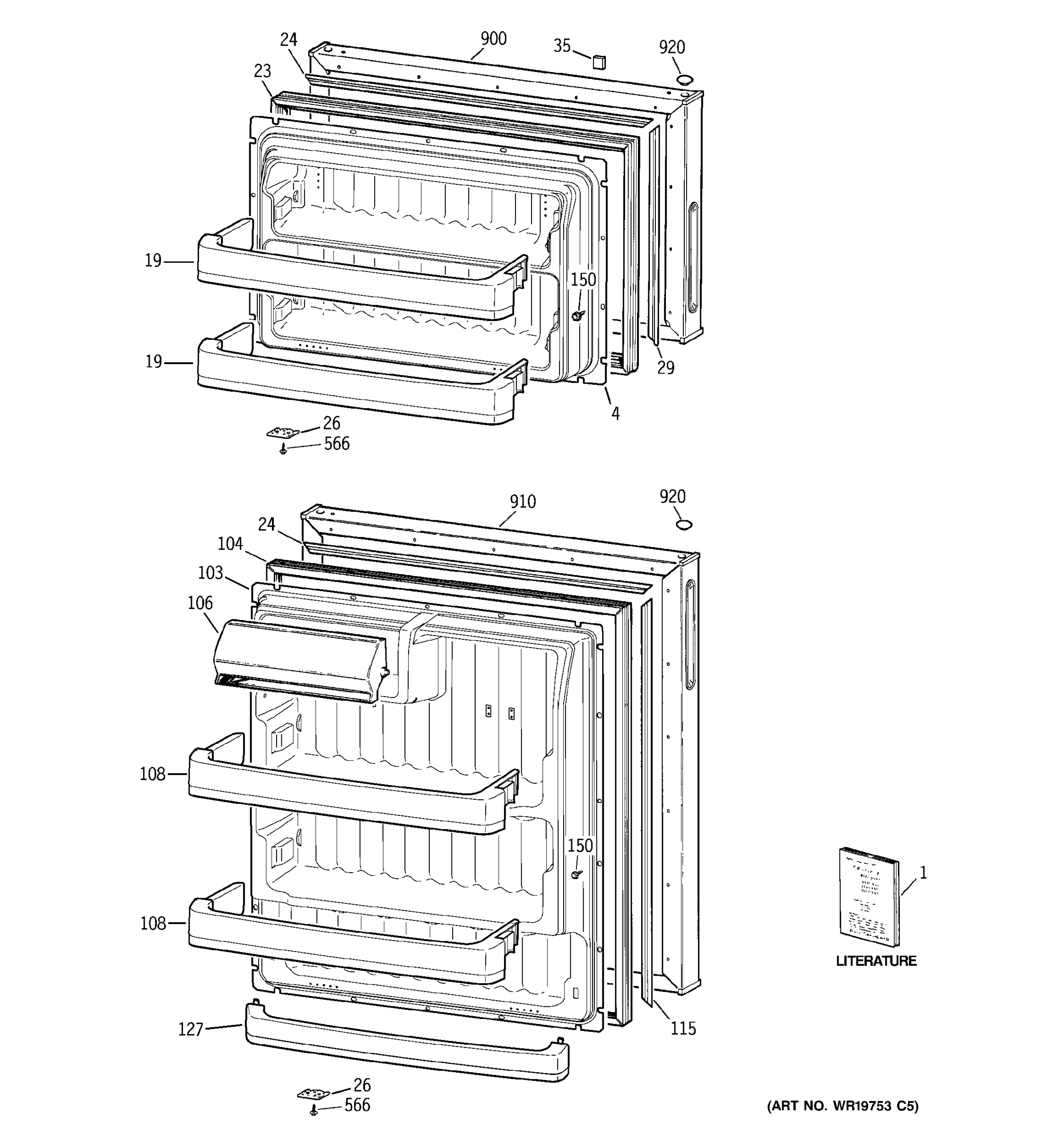 Common parts from model GE GTR18BBSERWW Refrigerator