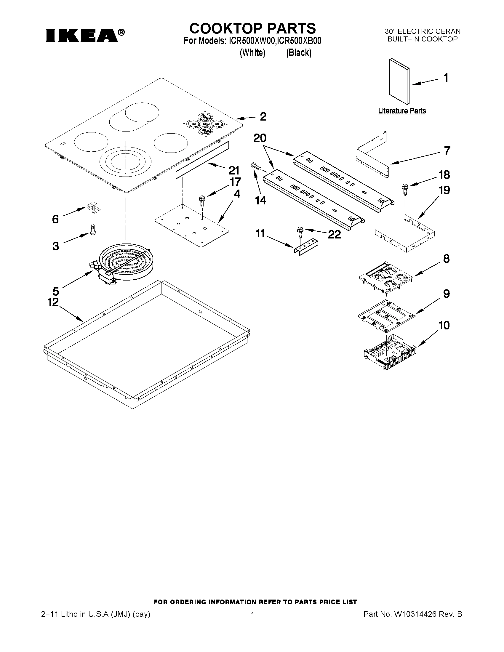 Model Whirlpool ICR500XW00 30`` ELECTRIC CERAN BUILT-IN COOKTOP – Common Parts & Diagrams