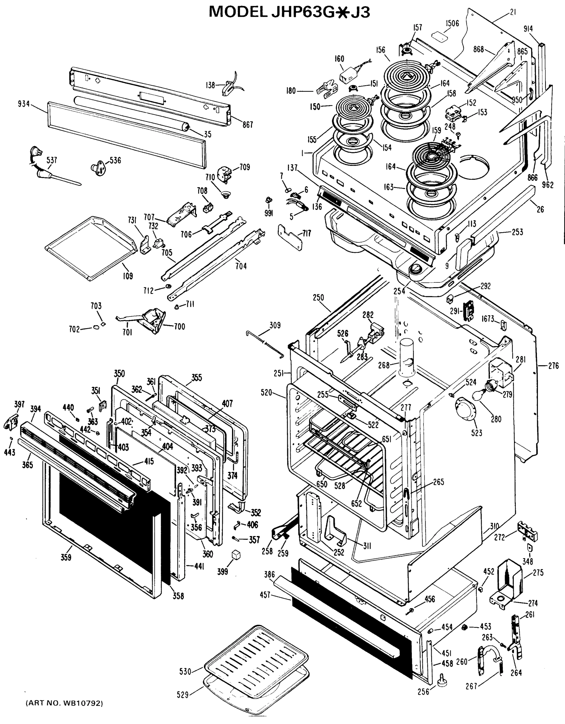 Model GE JHP63G*J3 Range With Microwave Combo – Common Parts & Diagrams
