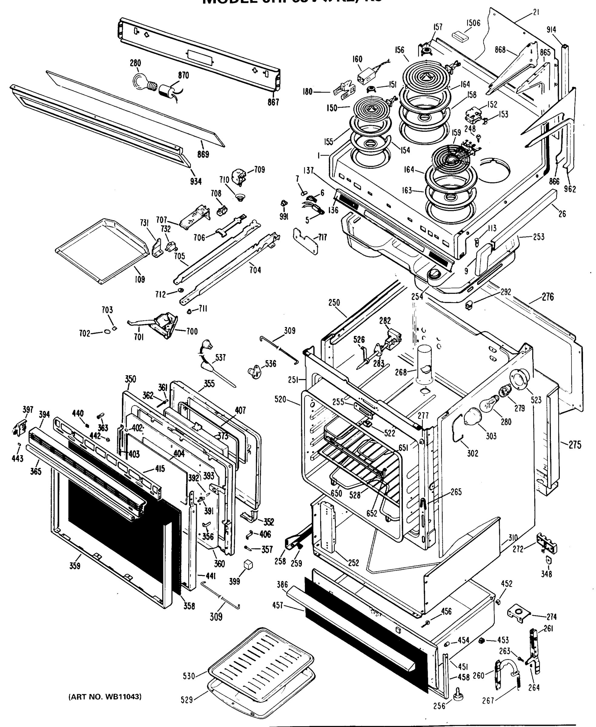 Common parts from model GE JHP63V*K3 Range With Microwave Combo