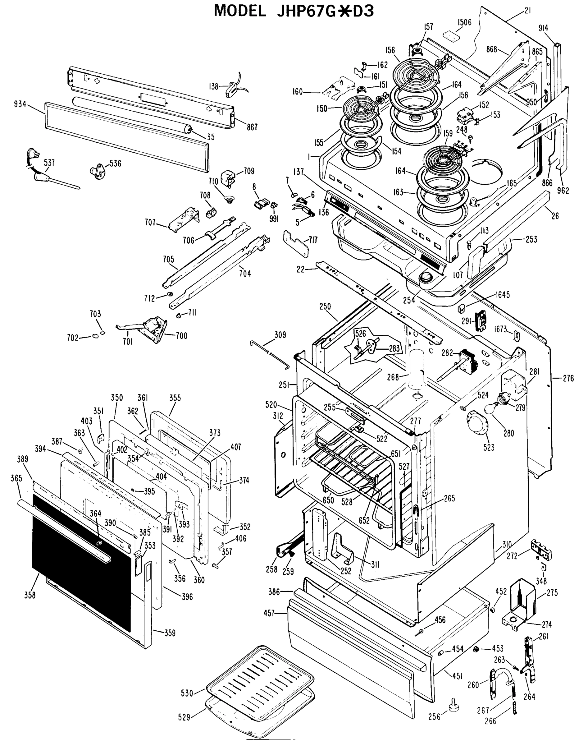 Model GE JHP67G*D3 Range With Microwave Combo – Common Parts & Diagrams