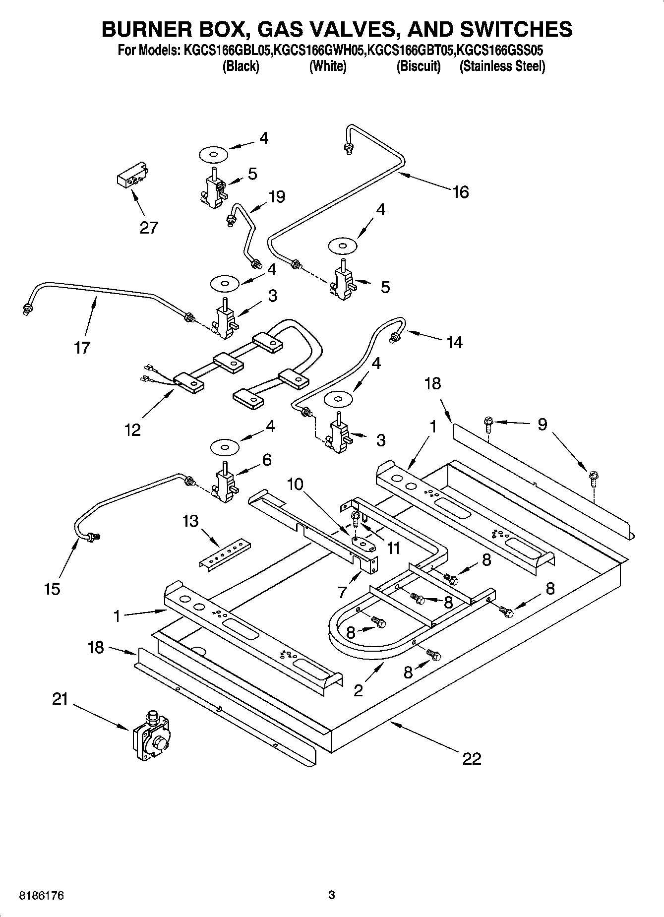 Model Whirlpool KGCS166GSS05 36`` GAS COOKTOP – Common Parts & Diagrams