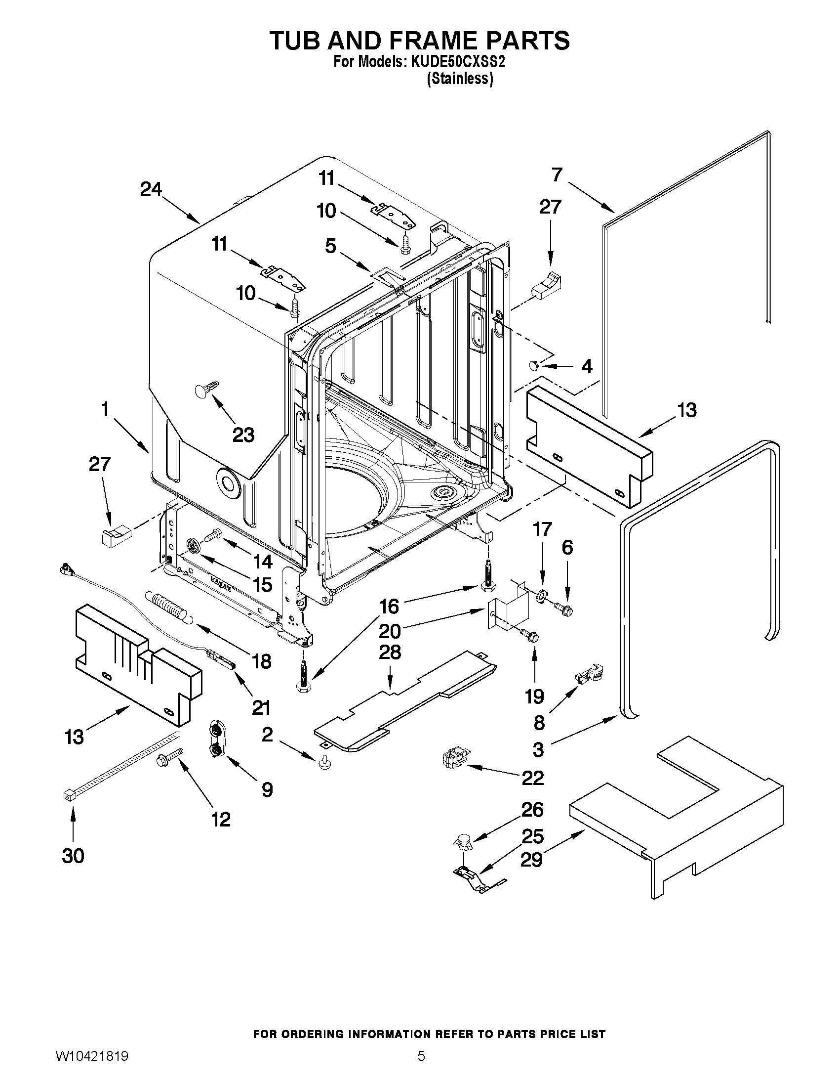 Model Whirlpool KUDE50CXSS2 UNDERCOUNTER DISHWASHER – Common Parts & Diagrams