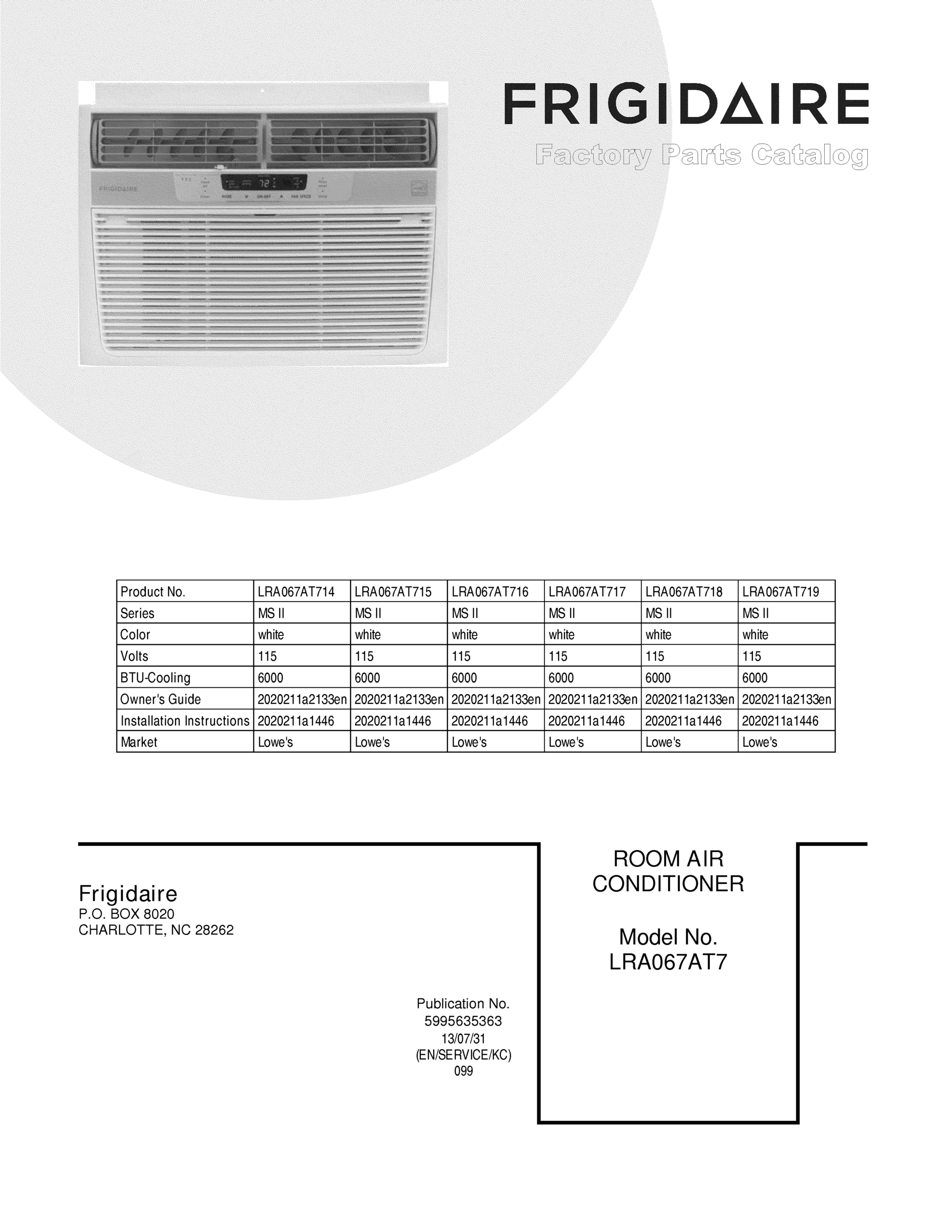 Model Electrolux LRA067AT716 ROOM AIR CONDITIONER – Common Parts & Diagrams