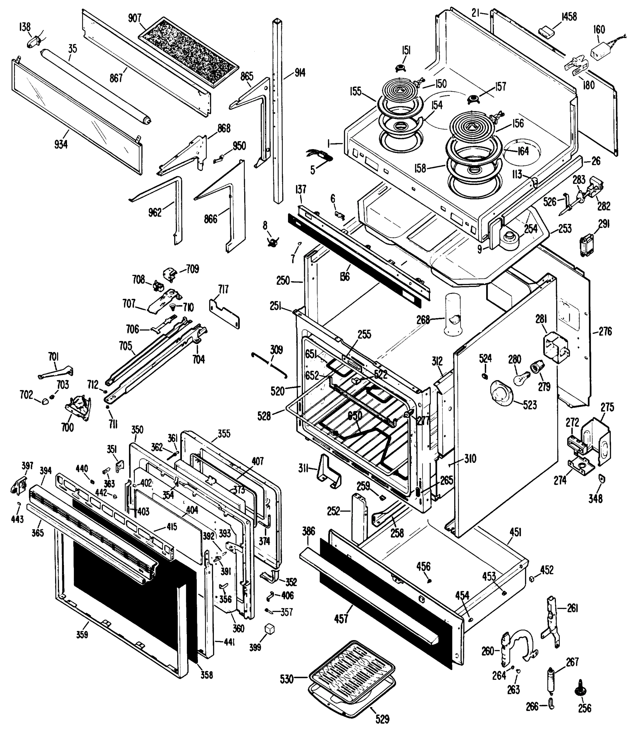 Model Hotpoint RH961G*J1 Electric Range – Common Parts & Diagrams