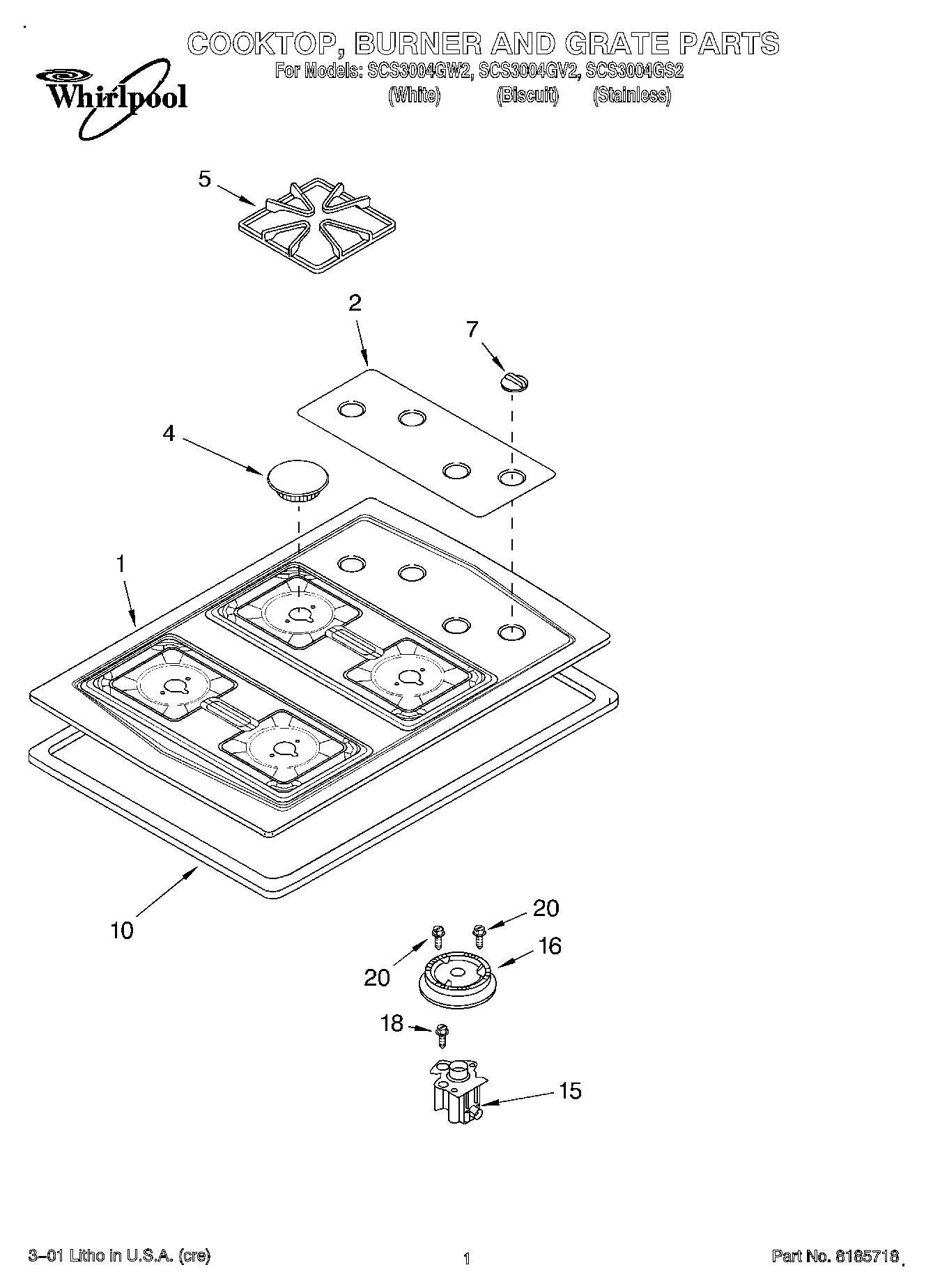 Model Whirlpool SCS3004GS2 COOKTOP – Common Parts & Diagrams