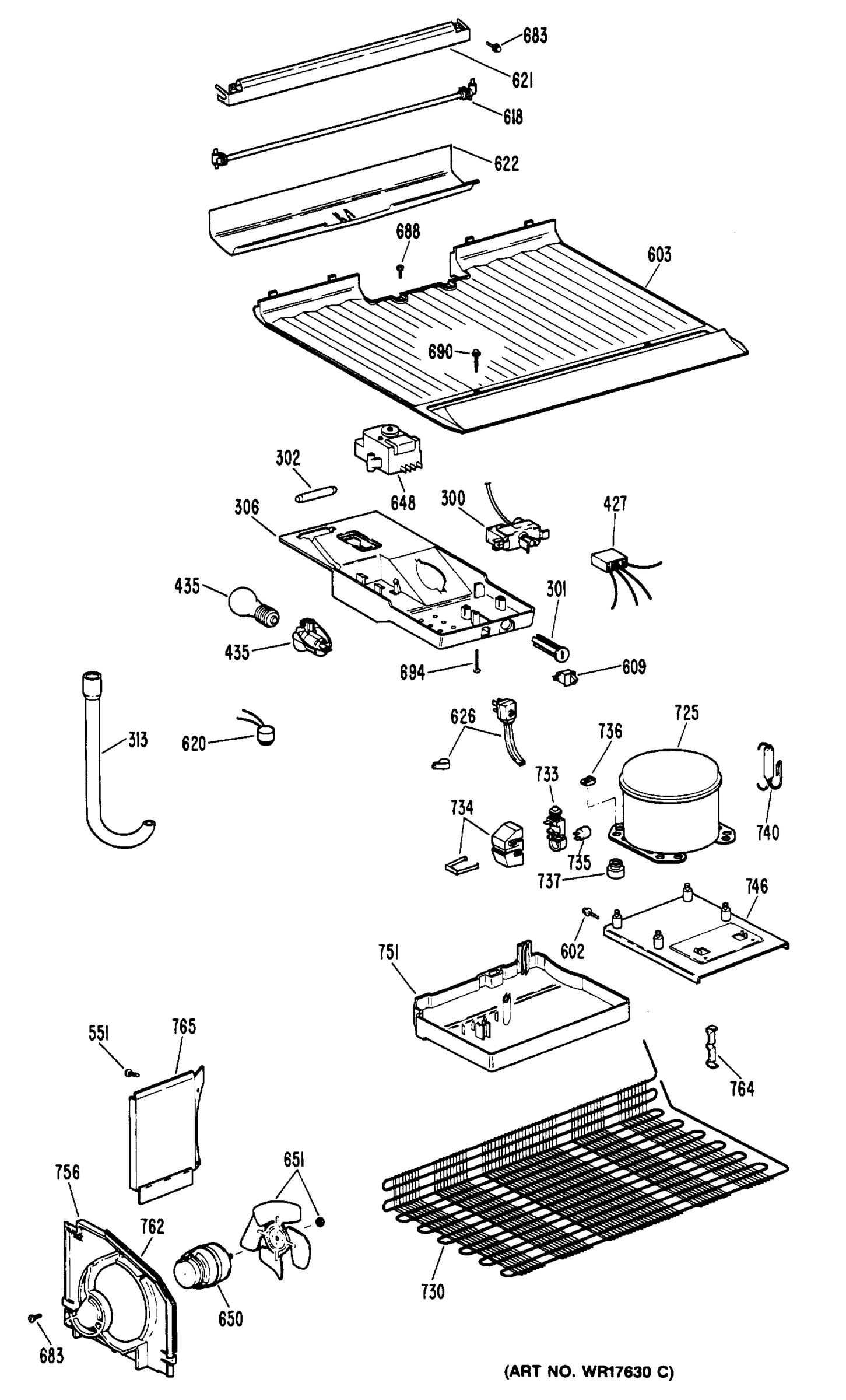 Common parts from model GE TBE16DPDRWH Refrigerator