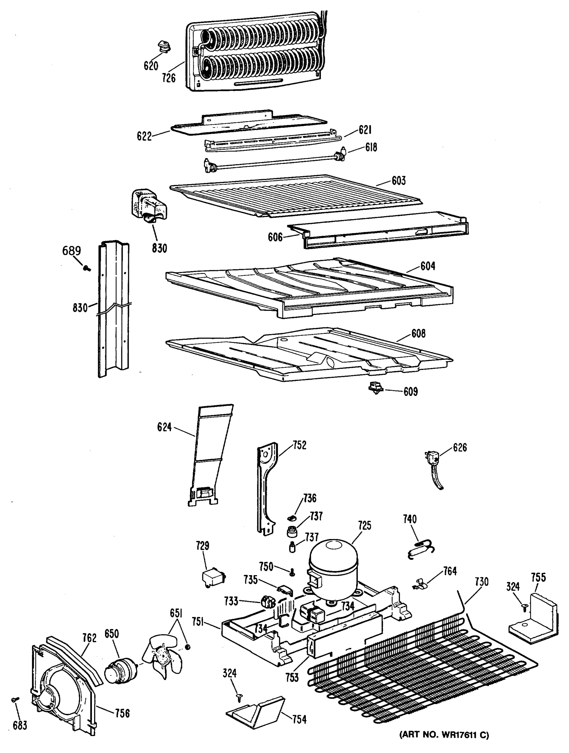 Common parts from model GE TBE18PRERWH Refrigerator