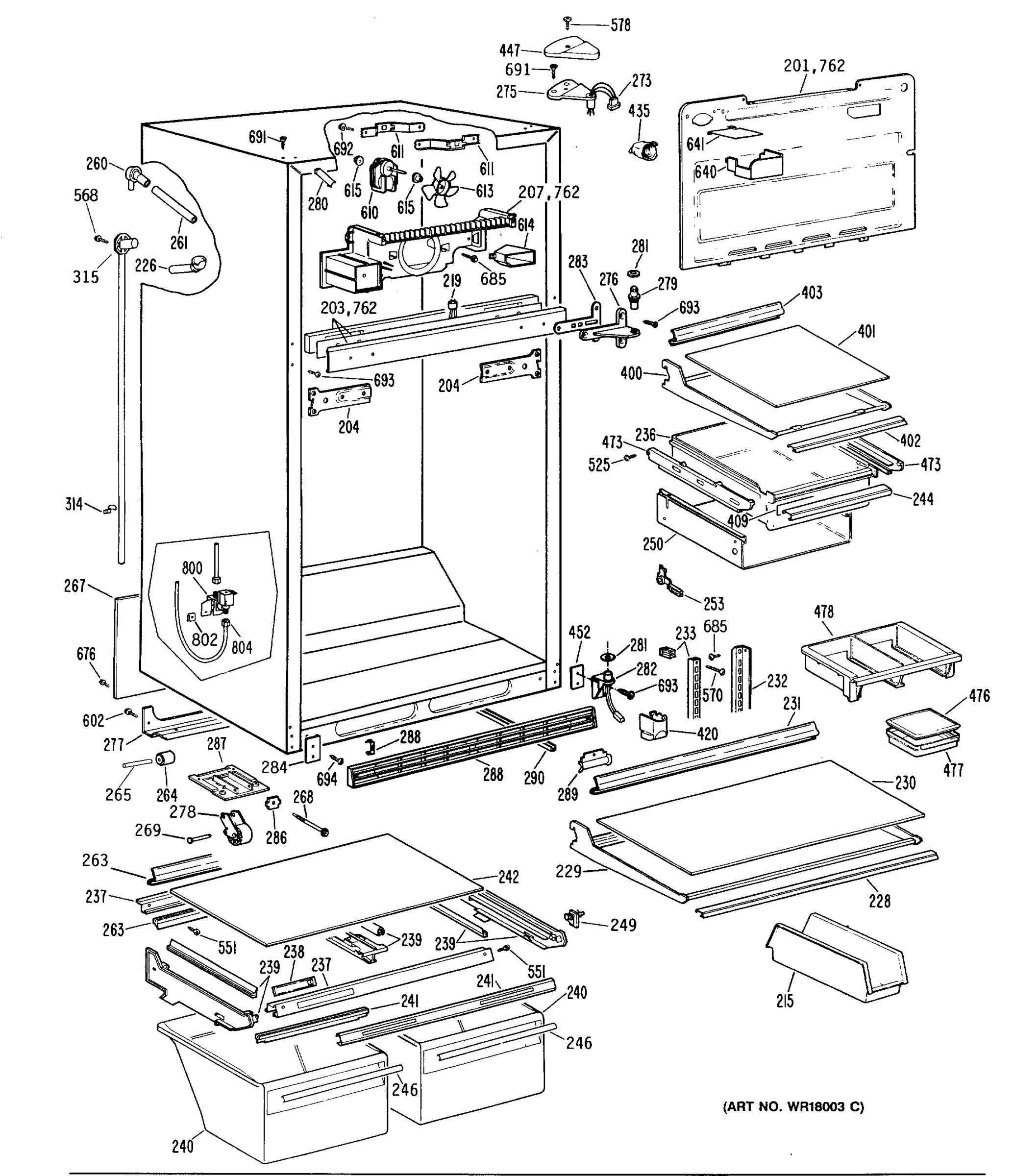 Model GE TBEW25FRDLWH Refrigerator – Common Parts & Diagrams