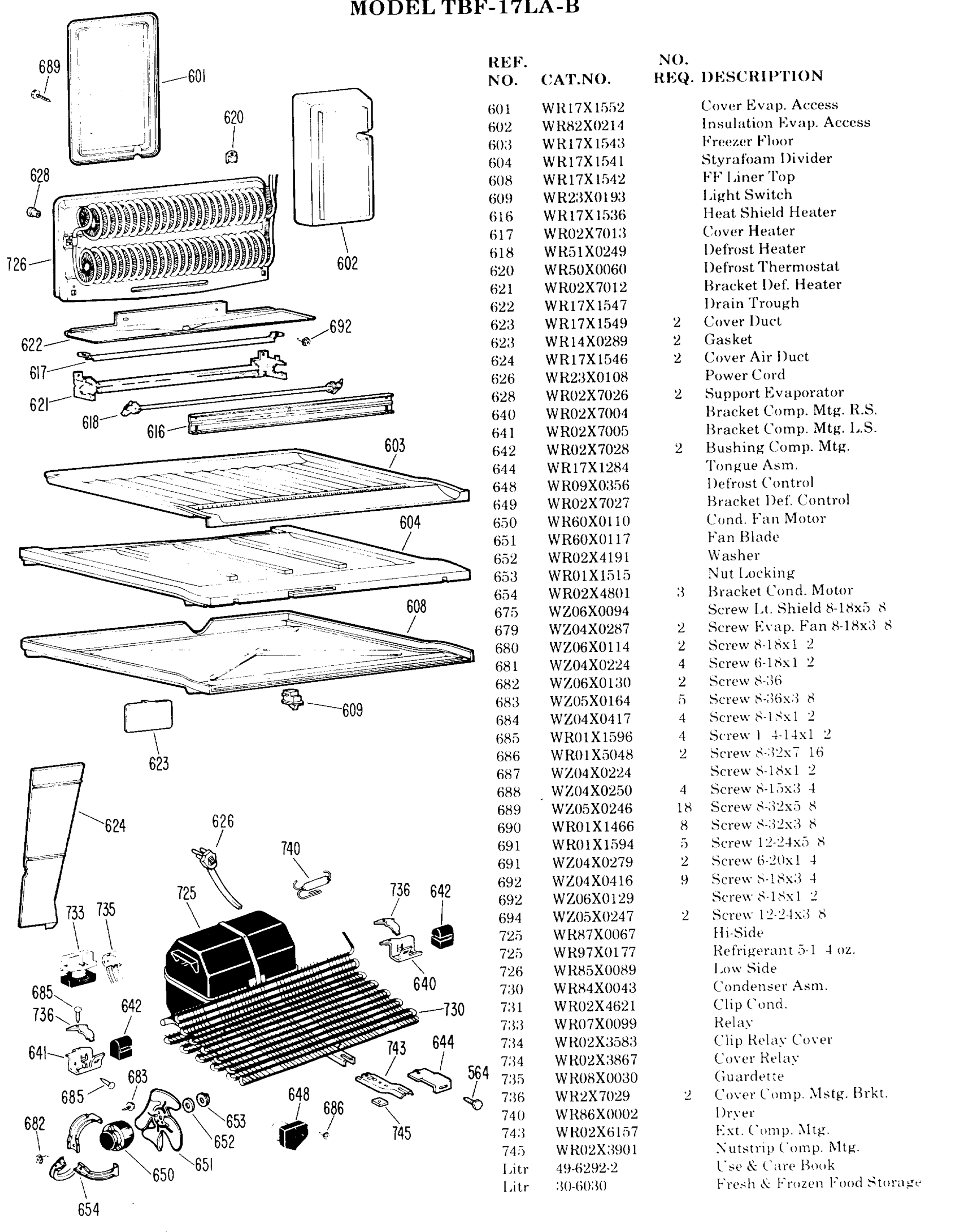 Model GE TBF17LAB Refrigerator – Common Parts & Diagrams