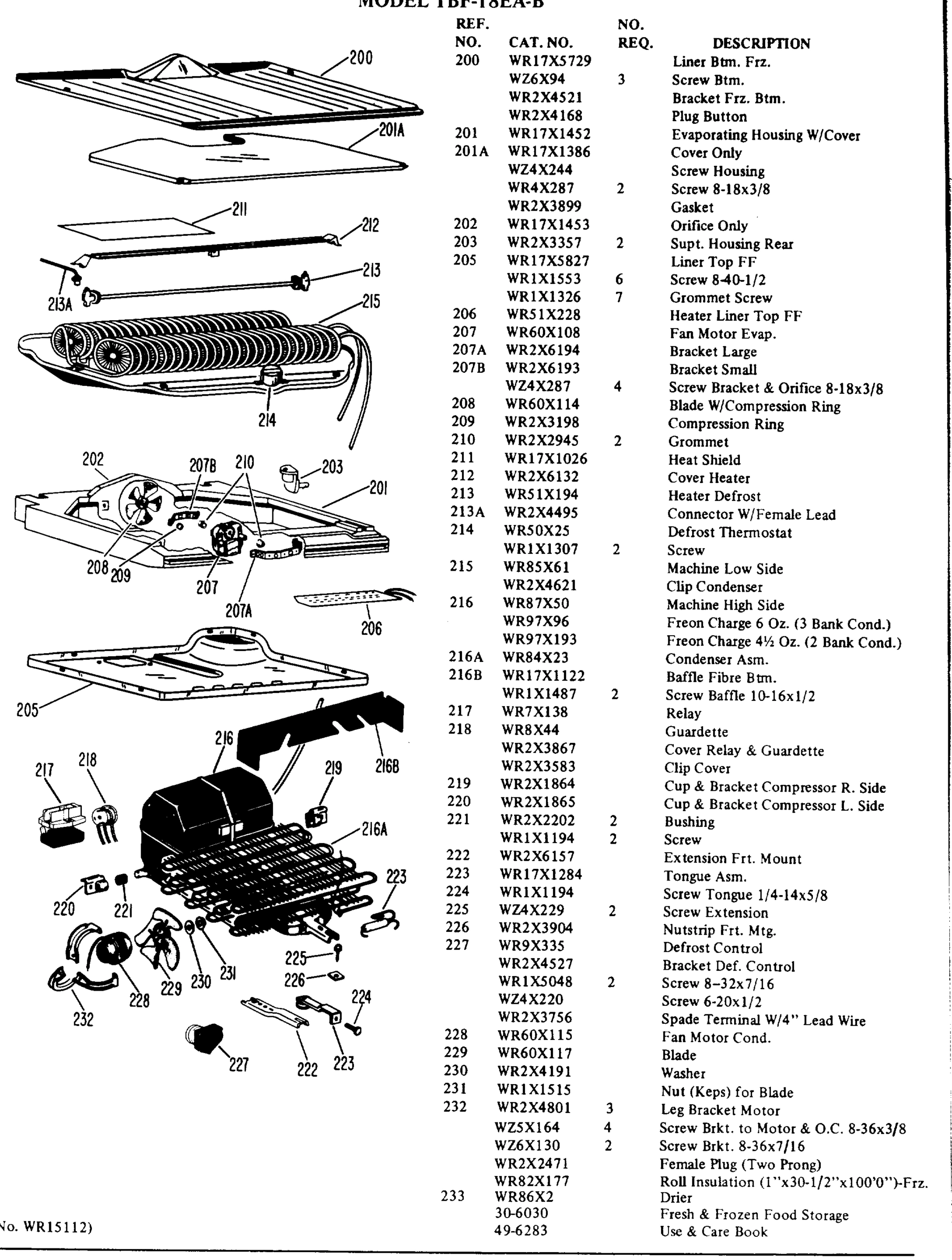 Common parts from model GE TBF18EAB