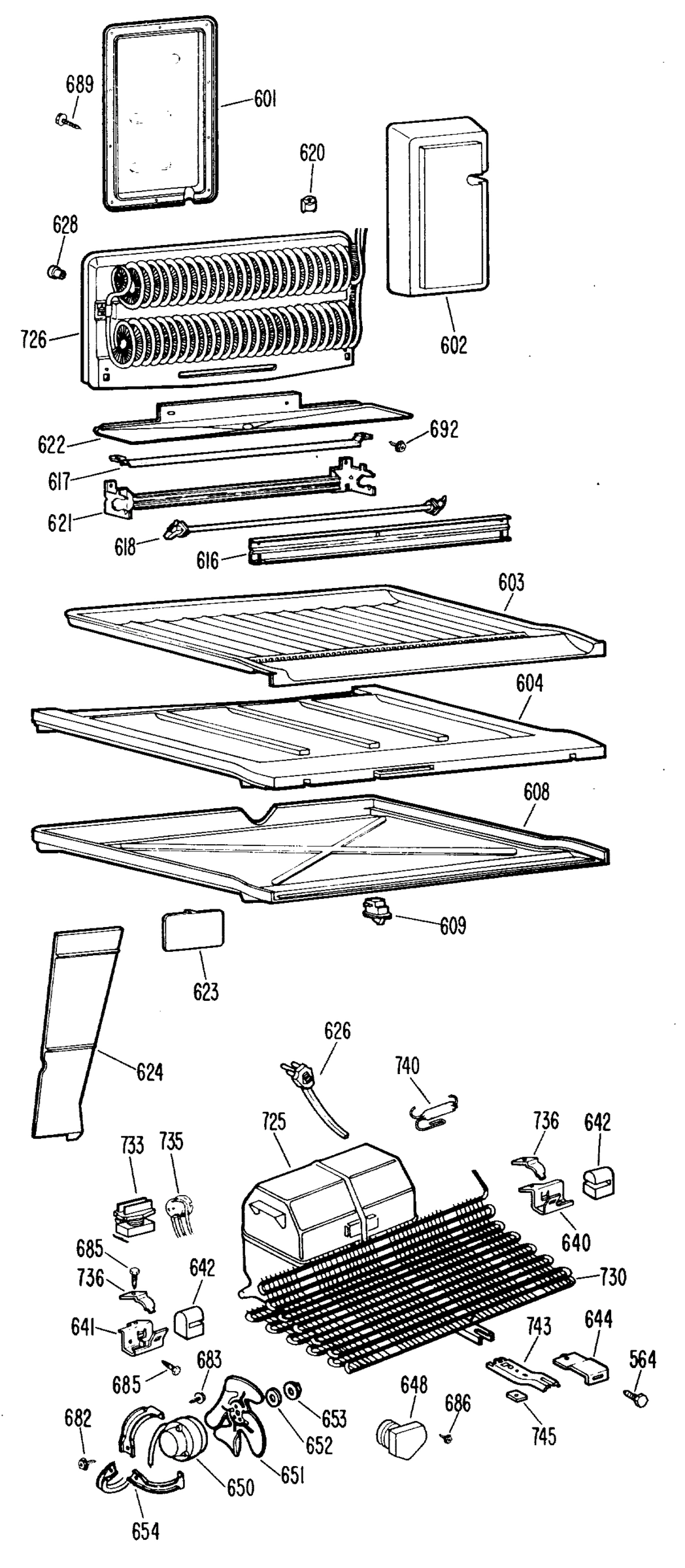 Common parts from model GE TBF19BBCR Refrigerator