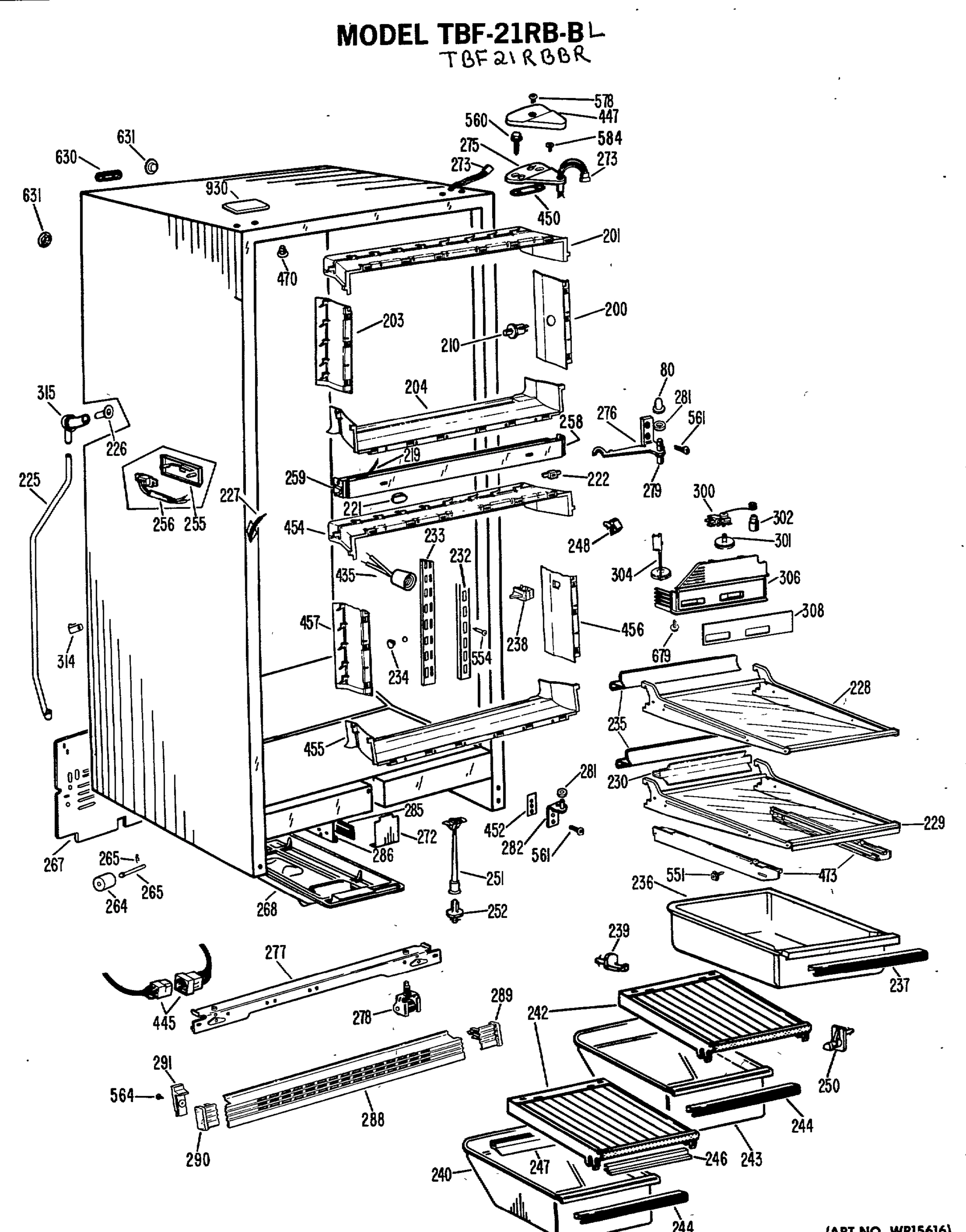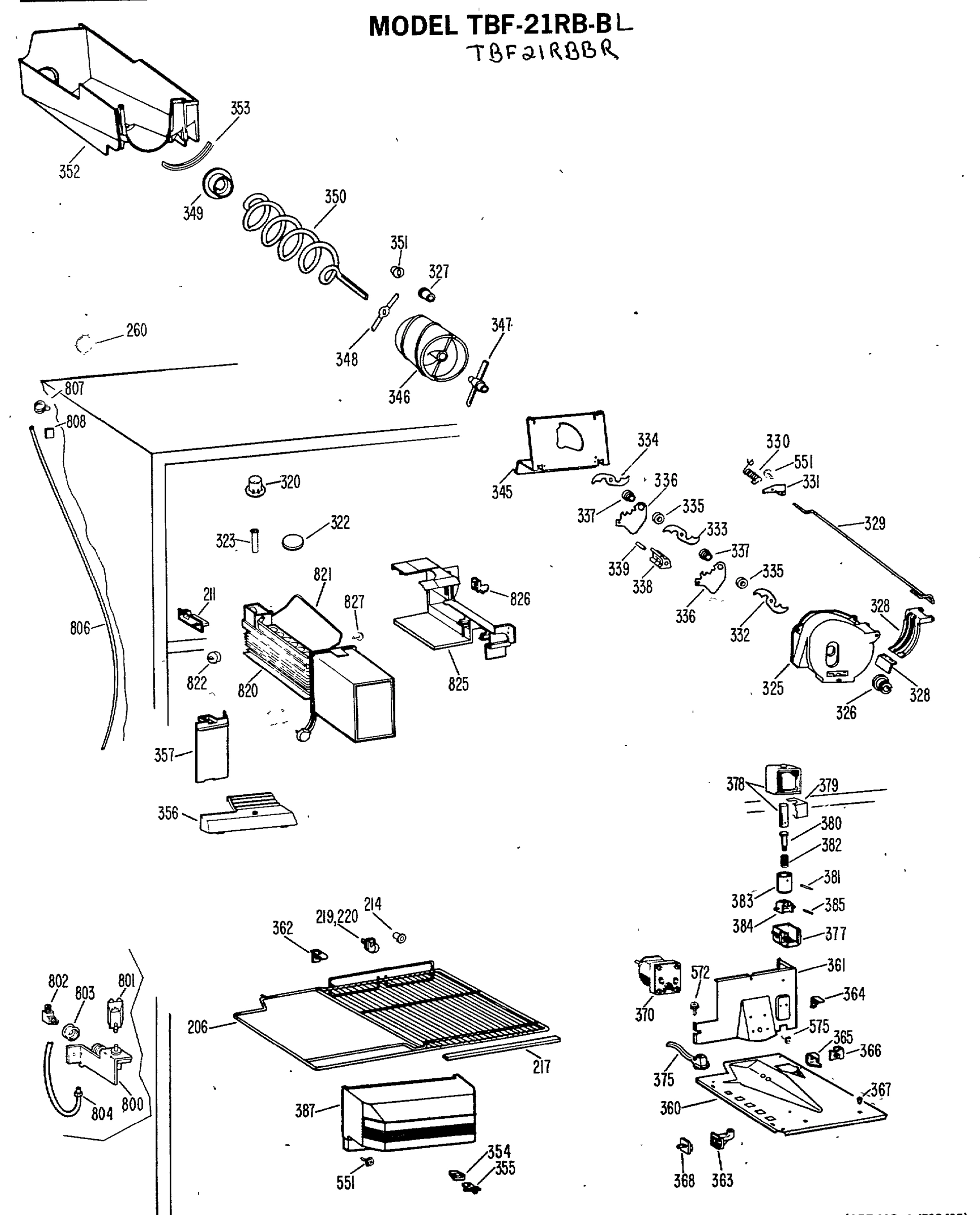 Model GE TBF21RBBL Refrigerator – Common Parts & Diagrams