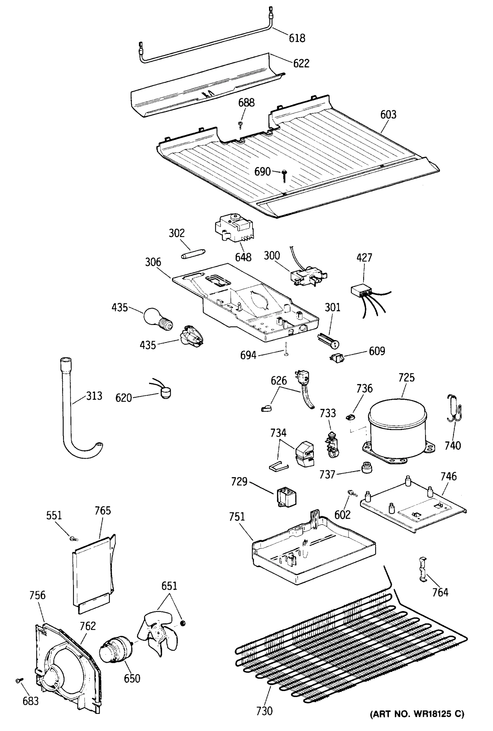 Common parts from model GE TBH14DATCRAD Refrigerator
